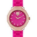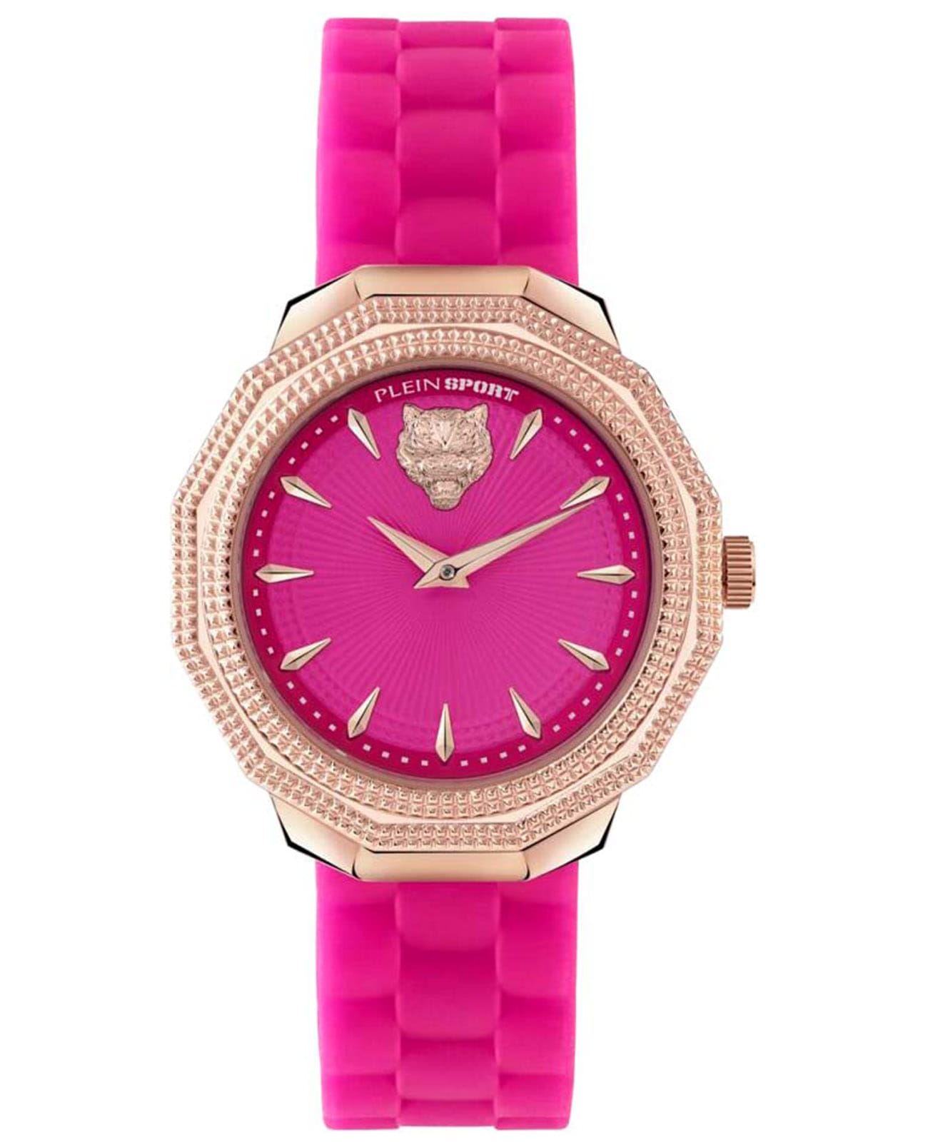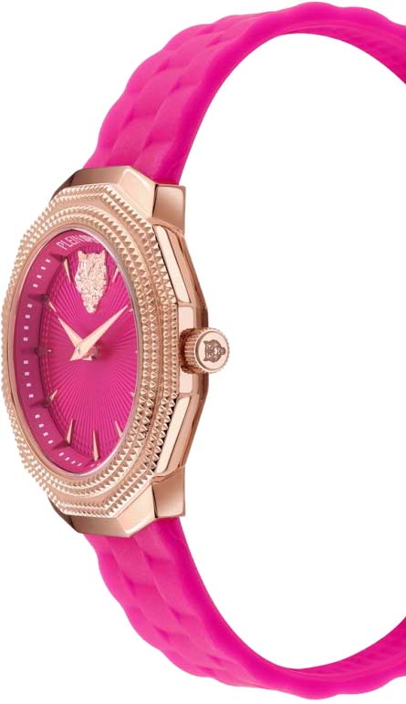 Немецкие кварцевые женские часы Plein Sport Dynasty PSOBA0223 с минеральным стекломМинеральное стеклоМинеральное стекло представляет собой искусственно выращенный минерал кварца. Такое стекло отличается особой устойчивостью к повреждениям и царапинам. Уступает по некоторым качествам сапфировому стеклу., кварцевый механизм с высокой точностью. Класс водозащиты: 50 метров, позволит защитить корпус от случайных брызг или капель дождя. Корпус часов изготовлен из стали с IP-покрытиемIP-покрытиеМетод ионного напыления. Демонстрирует повышенную устойчивость к истиранию, окислению и химическим веществам. Под воздействием высокого давления и температуры около 1500°C молекулы металла надёжно соединяются с частицами корпуса часов.. Силиконовый ремешок на стандартной застёжке.