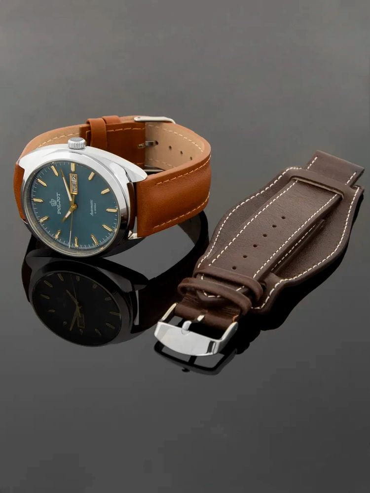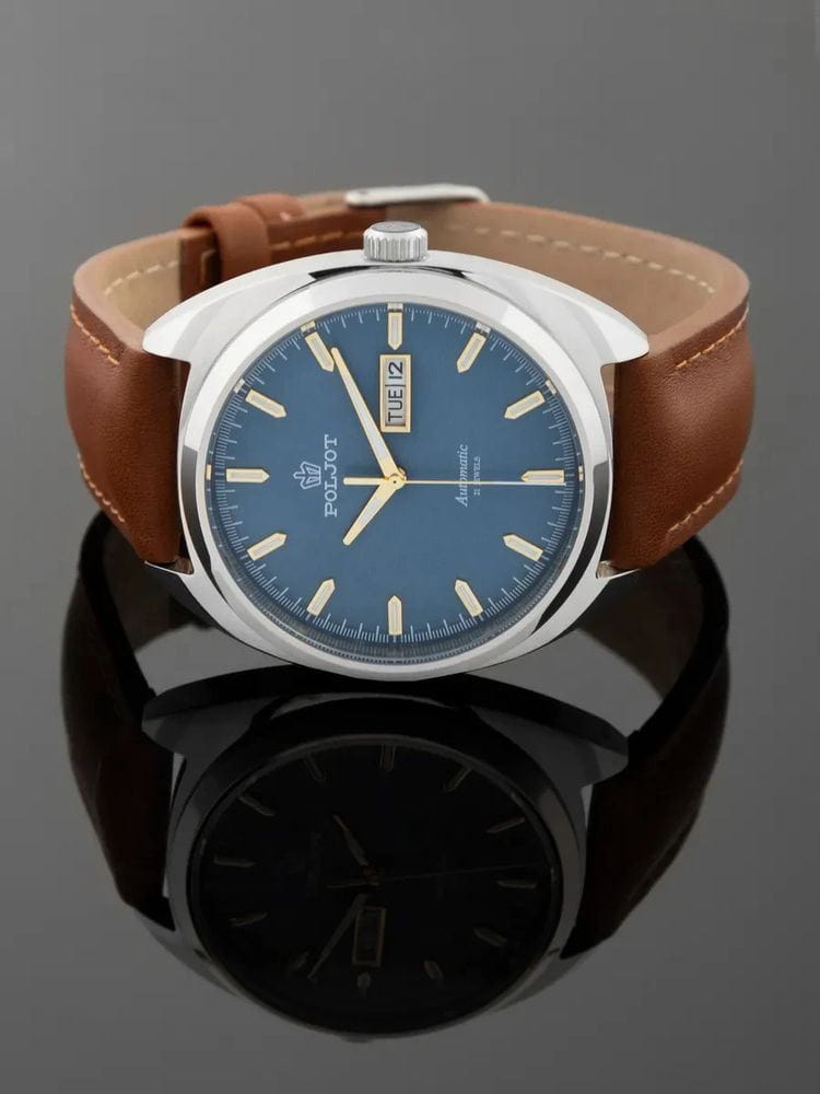 Poljot 8205.241277 — элегантные механические часы с автоподзаводом, сочетающем силу и изысканность. Корпус из нержавеющей стали подчеркивает надёжность и лаконичность дизайна, а глубокий циферблат с золотистыми стрелками придаёт модели благородный акцент. Проверенный японский механизм Miyota 8205 обеспечивает точность хода и долговечность, а плавное движение секундной стрелки подчёркивает качество сборки. Метки и стрелки с люминесцентным покрытиемЛюминесцентное покрытиеПозволяет считывать показания времени в темноте. Производители наносят на стрелки, часовые индексы, безель или поверхность циферблата светонакопительный состав, дающий холодное свечение. обеспечивают отличную читаемость при любом освещении, а окно даты добавляет практичности. Прочное минеральное стеклоМинеральное стеклоМинеральное стекло представляет собой искусственно выращенный минерал кварца. Такое стекло отличается особой устойчивостью к повреждениям и царапинам. Уступает по некоторым качествам сапфировому стеклу. защищает циферблат от царапин, а ремешок из натуральной кожи завершает утончённый облик модели. Poljot — гармония классики и современной механики, созданная для тех, кто ценит традиции и индивидуальность в каждой детали. В комплекте дополнительный ремешок с напульсником.