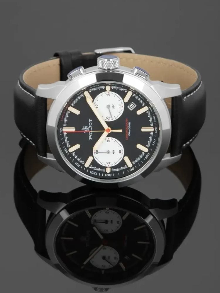 Poljot 6S21.741034 — классические мужские часы, в которых традиции российского часового мастерства сочетаются с современным дизайном. Корпус из нержавеющей стали подчёркивает солидность и надёжность модели, а насыщенный циферблат с лучевой текстурой придаёт образу выразительность и глубину. Два дополнительных счётчика хронографаХронографФункция позволяет измерять отрезки времени с особой точностью: часы, минуты, секунды. Верным признаком хронографа является наличие на циферблате 3 дополнительных окошек-счётчиков. обеспечивают точное измерение интервалов времени, дополняя функциональность часов. Контрастные стрелки и метки с люминесцентным покрытиемЛюминесцентное покрытиеПозволяет считывать показания времени в темноте. Производители наносят на стрелки, часовые индексы, безель или поверхность циферблата светонакопительный состав, дающий холодное свечение. обеспечивают отличную читаемость даже в условиях слабого освещения. Прочное минеральное стеклоМинеральное стеклоМинеральное стекло представляет собой искусственно выращенный минерал кварца. Такое стекло отличается особой устойчивостью к повреждениям и царапинам. Уступает по некоторым качествам сапфировому стеклу. защищает циферблат от царапин, а ремешок из натуральной кожи с классической пряжкой гарантирует комфорт и элегантную посадку на запястье. Poljot — это надёжный спутник современного мужчины, объединяющий точность, стиль и характер.