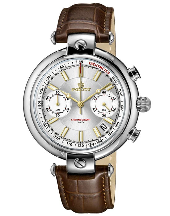 Poljot 6S21.961228 “Baikal” — элегантные кварцевые мужские часы, в которых классическая строгость сочетается с выразительным российским характером. Корпус из нержавеющей стали с крупными декоративными ушками придаёт модели солидность и узнаваемость, а глубокий циферблат с контрастными стрелками и индексами с люминесцентным покрытиемЛюминесцентное покрытиеПозволяет считывать показания времени в темноте. Производители наносят на стрелки, часовые индексы, безель или поверхность циферблата светонакопительный состав, дающий холодное свечение. подчёркивает точность и функциональность. Два дополнительных счётчика хронографаХронографФункция позволяет измерять отрезки времени с особой точностью: часы, минуты, секунды. Верным признаком хронографа является наличие на циферблате 3 дополнительных окошек-счётчиков. обеспечивают измерение времени с высокой точностью, а окно даты добавляет практичности. Прочное минеральное стеклоМинеральное стеклоМинеральное стекло представляет собой искусственно выращенный минерал кварца. Такое стекло отличается особой устойчивостью к повреждениям и царапинам. Уступает по некоторым качествам сапфировому стеклу. защищает циферблат от царапин, а ремешок из натуральной кожи с классической пряжкой гарантирует комфорт и надёжную фиксацию на запястье. Poljot “Baikal” — это сочетание традиций, надёжности и уверенного стиля, созданное для мужчин, ценящих точность и благородную сдержанность.