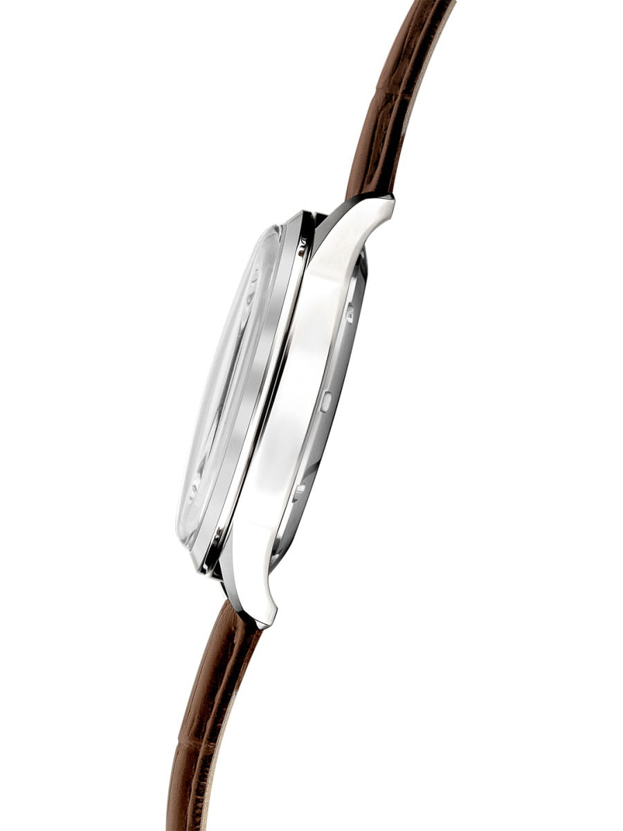 Poljot 8215.581020 — классические механические мужские часы с автоподзаводом, сочетающие традиции отечественного часового производства и лаконичный современный стиль. Корпус из нержавеющей стали подчёркивает надёжность и сдержанную элегантность модели, а глубокий циферблат с минималистичной разметкой, стрелки и метки с люминесцентным покрытиемЛюминесцентное покрытиеПозволяет считывать показания времени в темноте. Производители наносят на стрелки, часовые индексы, безель или поверхность циферблата светонакопительный состав, дающий холодное свечение., аккуратным окном даты и секундным акцентом придаёт образу динамичность. Механизм с автоподзаводом обеспечивает стабильную работу и плавный ход стрелок, подчёркивая инженерную точность исполнения. Прочное минеральное стеклоМинеральное стеклоМинеральное стекло представляет собой искусственно выращенный минерал кварца. Такое стекло отличается особой устойчивостью к повреждениям и царапинам. Уступает по некоторым качествам сапфировому стеклу. защищает циферблат, а ремешок из натуральной кожи с классической текстурой крокодила обеспечивает комфорт и благородный внешний вид. Poljot — воплощение надёжности, традиций и мужской элегантности, созданное для тех, кто ценит качество и уверенность в каждой детали.