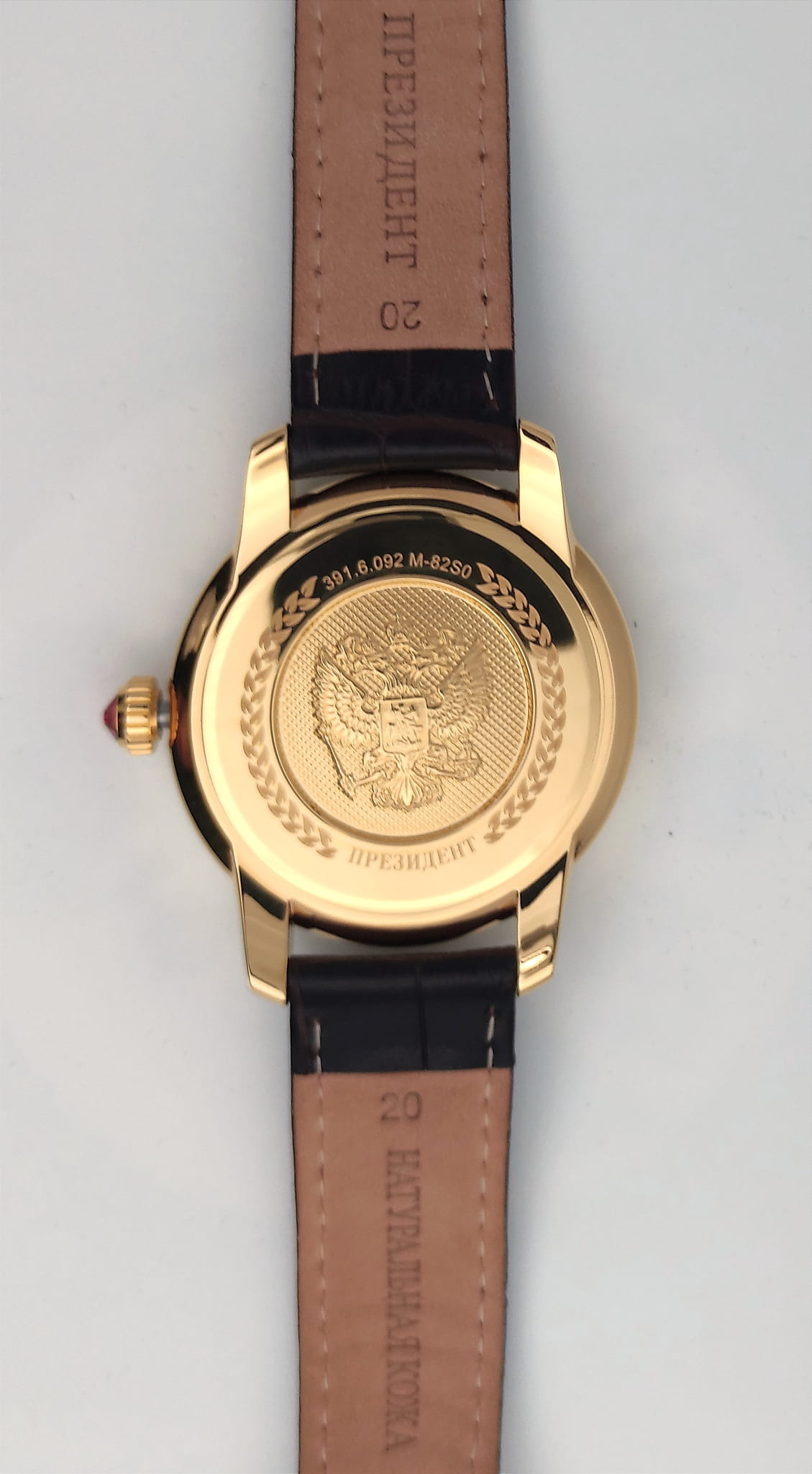 Часы «Президент» модели 3916092 — это мужские наручные часы, сочетающие элегантный дизайн и надёжность. Механизм: Miyota 82SO. Функции: часы, минуты, секунды. Корпус: из нержавеющей стали, обеспечивающий прочность и долговечность с PVD-покрытиемPVDУльтратонкое покрытие наносится в технике вакуумного напыления, сочетает в себе нитрид титана особой прочности со слоем золота или оксида хрома. Несёт в себе декоративную или защитную функцию.. Стекло: сапфировоеСапфировое стеклоПрочный и надёжный материал из кристалла сапфира синтетического происхождения, характеризующийся особой твёрдостью и устойчивостью к царапинам и повреждениям., устойчивое к царапинам. Водонепроницаемость: 50 метров, что делает часы подходящими для повседневного использования. Ремешок: кожаный, обеспечивающий комфорт при ношении. Эти часы — отличный выбор для деловых людей, ценящих стиль и качество.