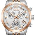 Часы оснащены кварцевым механизмом Seiko , гарантирующим высокую точность хода. Функция хронографХронографФункция позволяет измерять отрезки времени с особой точностью: часы, минуты, секунды. Верным признаком хронографа является наличие на циферблате 3 дополнительных окошек-счётчиков. и окошко даты добавляют модели практической пользы в повседневной жизни. На малом циферблате отображается время в 24-часовом формате, что удобно при планировании дня или работе в разных временных зонах. БезельБезельВнешний ободок, закрепляющий стекло. В спортивных часах так называется поворотное кольцо с делениями на циферблате, выполняет роль таймера – замеряет отрезки времени на шкале. Неподвижный безель – элемент декора. Однонаправленно вращающийся безель на дайверских часах позволяет фиксировать моменты погружения и выныривания на поверхность. с IP-покрытиемIP-покрытиеМетод ионного напыления. Демонстрирует повышенную устойчивость к истиранию, окислению и химическим веществам. Под воздействием высокого давления и температуры около 1500°C молекулы металла надёжно соединяются с частицами корпуса часов..