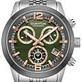 Часы оснащены кварцевым механизмом Seiko , гарантирующим высокую точность хода. Функция хронографХронографФункция позволяет измерять отрезки времени с особой точностью: часы, минуты, секунды. Верным признаком хронографа является наличие на циферблате 3 дополнительных окошек-счётчиков. и окошко даты добавляют модели практической пользы в повседневной жизни. На малом циферблате отображается время в 24-часовом формате, что удобно при планировании дня или работе в разных временных зонах. БезельБезельВнешний ободок, закрепляющий стекло. В спортивных часах так называется поворотное кольцо с делениями на циферблате, выполняет роль таймера – замеряет отрезки времени на шкале. Неподвижный безель – элемент декора. Однонаправленно вращающийся безель на дайверских часах позволяет фиксировать моменты погружения и выныривания на поверхность. с IP-покрытиемIP-покрытиеМетод ионного напыления. Демонстрирует повышенную устойчивость к истиранию, окислению и химическим веществам. Под воздействием высокого давления и температуры около 1500°C молекулы металла надёжно соединяются с частицами корпуса часов..