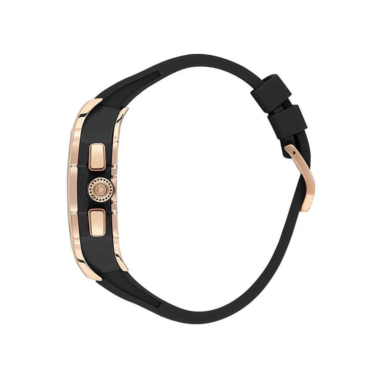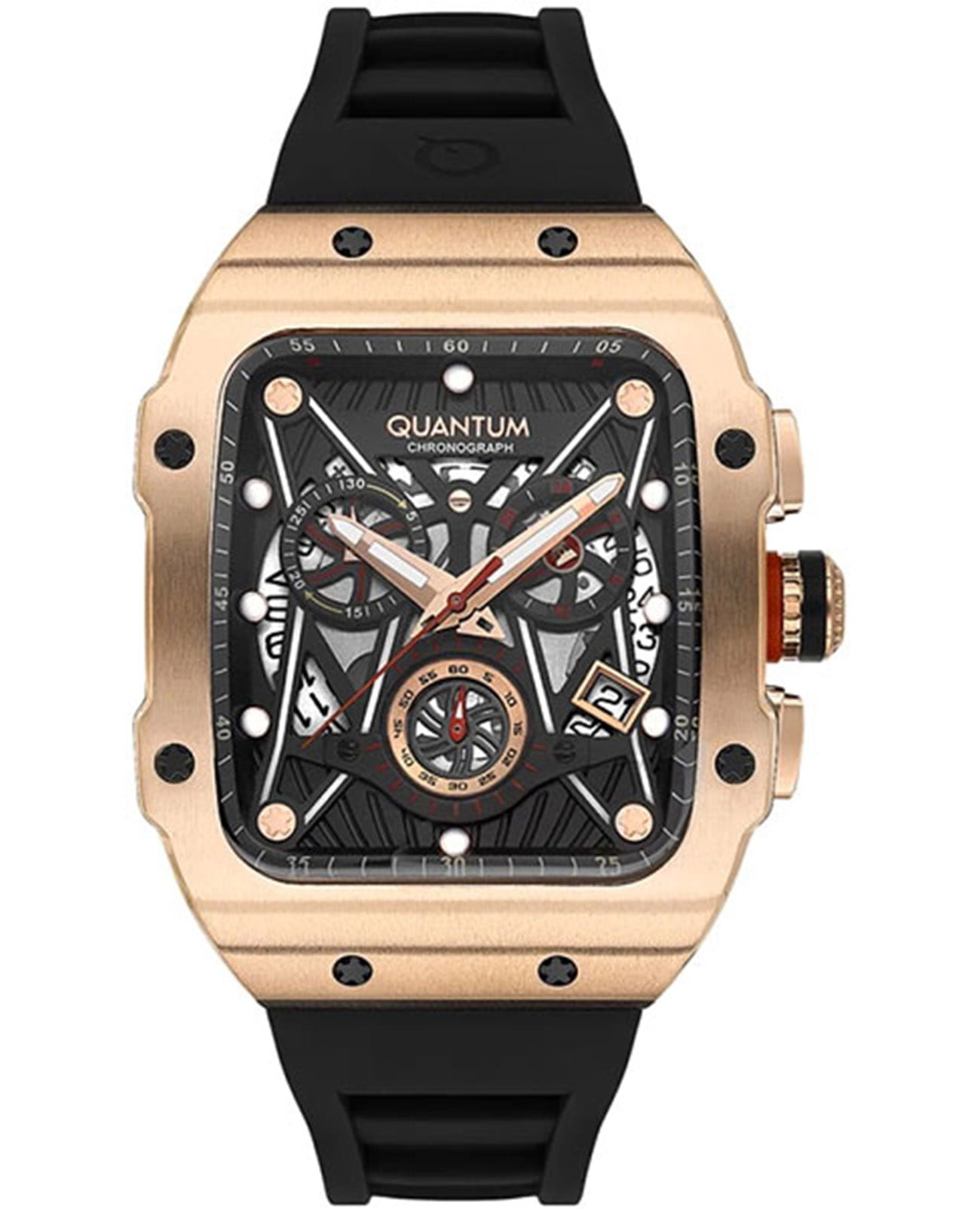 Мужские кварцевые часы Quantum из коллекции Hunter — массивный прямоугольный корпус размером 44 мм из нержавеющей стали с PVD-покрытиемPVDУльтратонкое покрытие наносится в технике вакуумного напыления, сочетает в себе нитрид титана особой прочности со слоем золота или оксида хрома. Несёт в себе декоративную или защитную функцию. чёрного цвета и чёрный циферблат с функциями хронографаХронографФункция позволяет измерять отрезки времени с особой точностью: часы, минуты, секунды. Верным признаком хронографа является наличие на циферблате 3 дополнительных окошек-счётчиков. и окошком даты. Стекло — минеральноеМинеральное стеклоМинеральное стекло представляет собой искусственно выращенный минерал кварца. Такое стекло отличается особой устойчивостью к повреждениям и царапинам. Уступает по некоторым качествам сапфировому стеклу. с антибликовым покрытием. Механизм — японский кварцевый Seiko. Водонепроницаемость 100 м. Ремешок — чёрный силиконовый на стандартной застёжке. Идеальный выбор для тех, кто ценит турецкий дизайн и уверенный спортивный стиль.