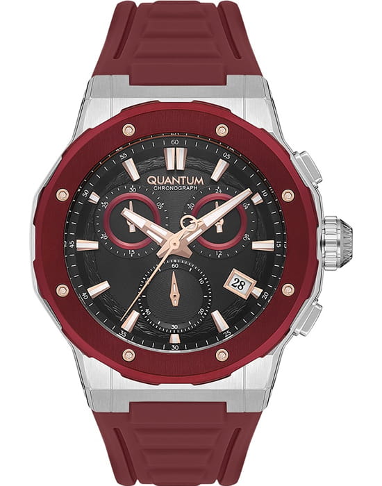 Мужские наручные часы-хронографХронографФункция позволяет измерять отрезки времени с особой точностью: часы, минуты, секунды. Верным признаком хронографа является наличие на циферблате 3 дополнительных окошек-счётчиков. Quantum HNG1082.358, кварцевый механизм с высокой точностью. Минеральное стеклоМинеральное стеклоМинеральное стекло представляет собой искусственно выращенный минерал кварца. Такое стекло отличается особой устойчивостью к повреждениям и царапинам. Уступает по некоторым качествам сапфировому стеклу. устойчивое к появлению царапин, обладающее высокой прозрачностью. Класс водозащиты: 100 метров, позволит плавать, нырять и заниматься другими водными видами спорта. Корпус часов изготовлен из нержавеющей стали. Стрелки и метки с люминесцентным покрытиемЛюминесцентное покрытиеПозволяет считывать показания времени в темноте. Производители наносят на стрелки, часовые индексы, безель или поверхность циферблата светонакопительный состав, дающий холодное свечение.. Каучуковый ремешок.