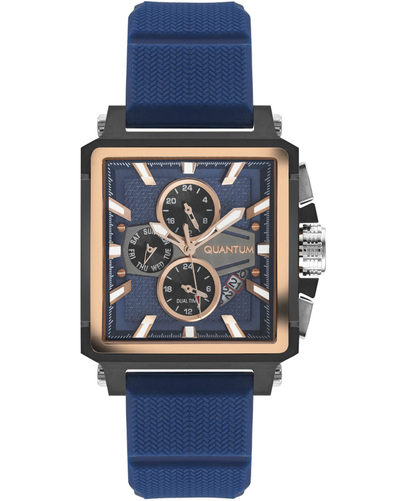 Мужские наручные часы Quantum HNG969.090, кварцевый механизм с высокой точностью. Минеральное стеклоМинеральное стеклоМинеральное стекло представляет собой искусственно выращенный минерал кварца. Такое стекло отличается особой устойчивостью к повреждениям и царапинам. Уступает по некоторым качествам сапфировому стеклу. устойчивое к появлению царапин, обладающее высокой прозрачностью. Класс водозащиты: 100 метров, позволит плавать, нырять и заниматься другими водными видами спорта. Стрелки с люминесцентным покрытиемЛюминесцентное покрытиеПозволяет считывать показания времени в темноте. Производители наносят на стрелки, часовые индексы, безель или поверхность циферблата светонакопительный состав, дающий холодное свечение.. Корпус часов изготовлен из нержавеющей стали с IP-покрытиемIP-покрытиеМетод ионного напыления. Демонстрирует повышенную устойчивость к истиранию, окислению и химическим веществам. Под воздействием высокого давления и температуры около 1500°C молекулы металла надёжно соединяются с частицами корпуса часов.. Силиконовый ремешок на стандартной застёжке. Окошко даты находится в положении между 4 и 5 часов.