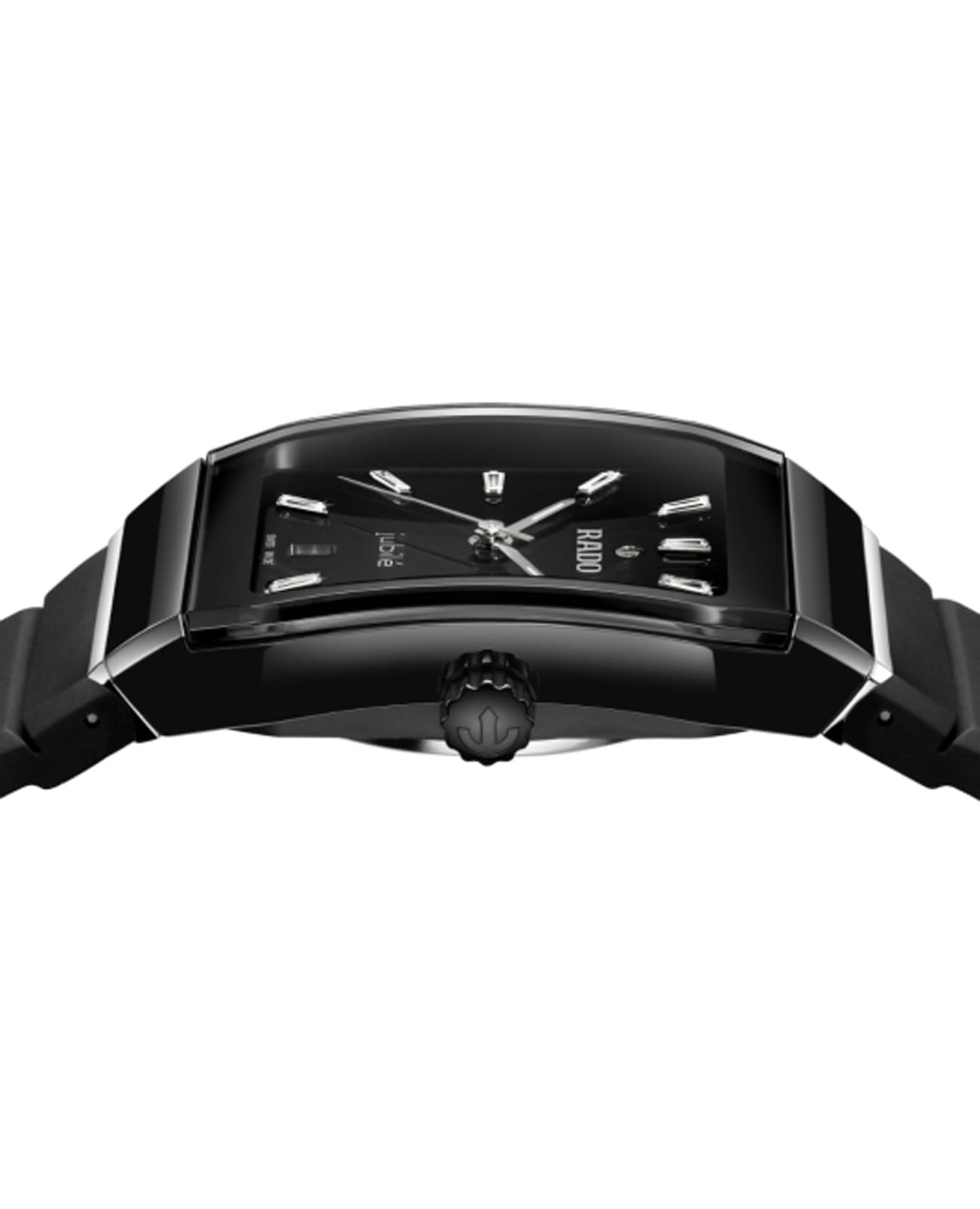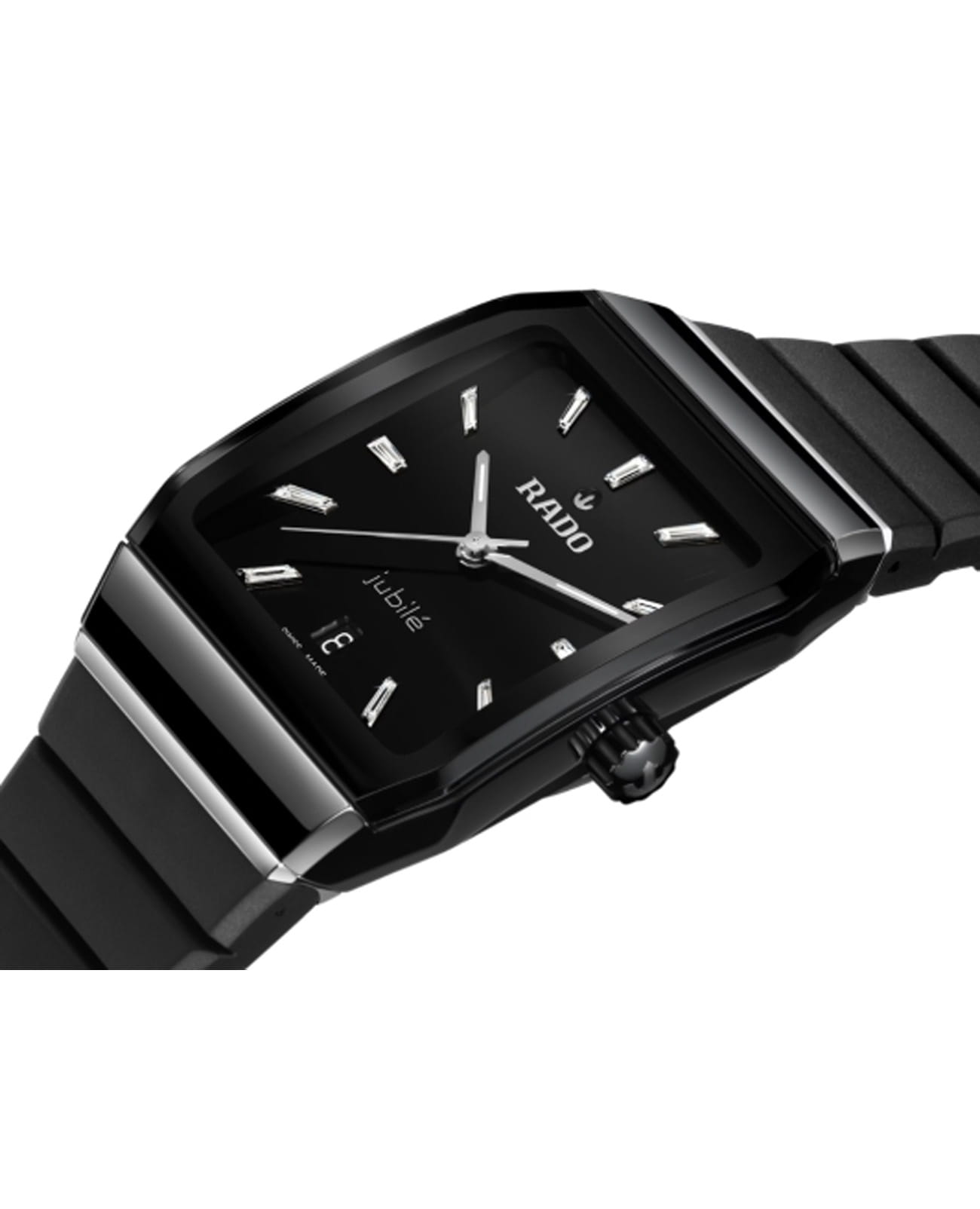 Мужские швейцарские механические часы Rado Anatom Automatic R10201739. Сапфировое стеклоСапфировое стеклоПрочный и надёжный материал из кристалла сапфира синтетического происхождения, характеризующийся особой твёрдостью и устойчивостью к царапинам и повреждениям. устойчивое к мелким механическим повреждениям. Корпус часов изготовлен из нержавеющей стали с PVD-покрытиемPVDУльтратонкое покрытие наносится в технике вакуумного напыления, сочетает в себе нитрид титана особой прочности со слоем золота или оксида хрома. Несёт в себе декоративную или защитную функцию. и керамики. Стрелки с люминесцентным покрытиемЛюминесцентное покрытиеПозволяет считывать показания времени в темноте. Производители наносят на стрелки, часовые индексы, безель или поверхность циферблата светонакопительный состав, дающий холодное свечение.. Циферблат украшен бриллиантами. Окошко даты находится в положении 6 часов. Класс водозащиты: 50 метров, позволит защитить корпус от случайных брызг или капель дождя. Каучковый ремешок на раскладной застёжкеРаскладная застёжкаТакой тип застёжки используется только на браслетах из металла. Она никогда не раскрывается полностью, происходит разделение на 2 и более частей. Раскладывающая застёжка снизит вероятность потери часов к минимуму..