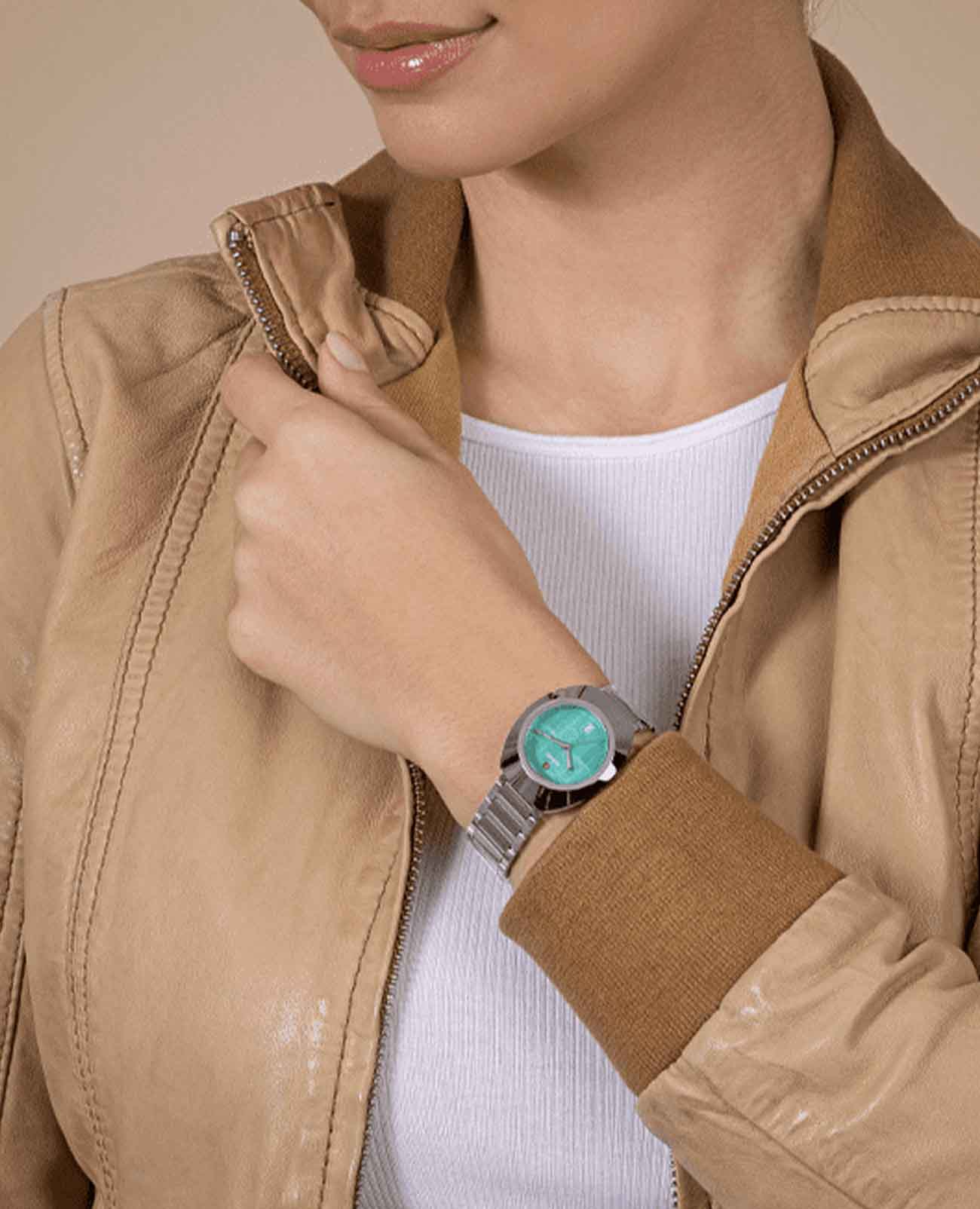Женские механические часы Rado DiaStar Original R12170323 — это сочетание инновационных технологий и элегантного дизайна. Модель диаметром 30 мм выполнена в прочном корпусе из нержавеющей стали 316L с добавлением керамики , а безель изготовлен из уникального материала Ceramos™ , обладающего свойствами керамики и металла. Это делает его устойчивым к царапинам и придает модели особый премиальный вид. Часы оснащены надежным механическим механизмом с автоподзаводом , калибр R586 , обеспечивающим запас хода до 48 часов . Механизм тонко регулируется в пяти положениях и оснащен пружиной Nivachron™ , которая повышает устойчивость к магнитным полям и обеспечивает высокую точность хода. Также реализована функция остановки секундной стрелки для удобной настройки времени. Циферблат зеленого цвета с матовой текстурой в двух направлениях выглядит особенно эффектно: он играет со светом и подчеркивает серебристый якорь в центре, который стал символом коллекции DiaStar. Стрелки родиевого цвета покрыты составом Super-LumiNova® , что позволяет легко считывать время даже при слабом освещении люминесцентное покрытиеЛюминесцентное покрытиеПозволяет считывать показания времени в темноте. Производители наносят на стрелки, часовые индексы, безель или поверхность циферблата светонакопительный состав, дающий холодное свечение.. Защиту циферблата обеспечивает прочное сапфировое стеклоСапфировое стеклоПрочный и надёжный материал из кристалла сапфира синтетического происхождения, характеризующийся особой твёрдостью и устойчивостью к царапинам и повреждениям. с антибликовым покрытием и вертикальной гранью, которое не царапается в процессе носки и сохраняет чистоту взгляда на протяжении многих лет. Браслет выполнен из нержавеющей стали 316L с чередованием полированных и матовых звеньев, что придает модели дополнительную выразительность. Зафиксировать часы на руке помогает надежная тройная раскладывающаяся застежка . Часы обладают водонепроницаемостью WR100 (10 АТМ) — их можно носить во время плавания или прогулок под дождем, не опасаясь за сохранность механизма. Эта модель продолжает линию DiaStar , созданную как первые в мире по-настоящему водонепроницаемые часы без отдельного герметичного корпуса. Сегодня эта коллекция — символ вечности, прочности и смелости, сочетающий швейцарское качество с современным дизайном. Rado DiaStar Original R12170323 — выбор тех, кто ценит технологичность, стиль и историю бренда , воплощенную в одном аксессуаре. Это не просто часы, а символ уверенности, независимости и вкуса.