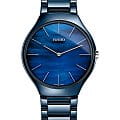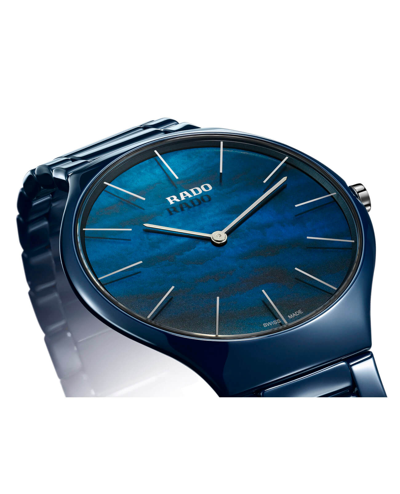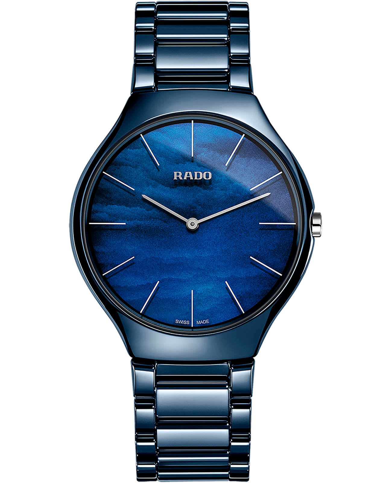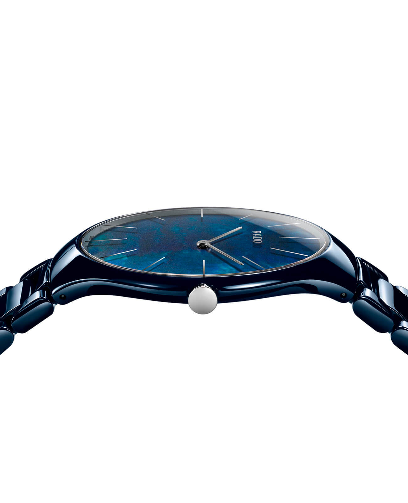 Оригинальный аксессуар выполнен в цвете ночной синевы, модель олицетворяет воду как символ гармоничной природы. Перламутровый циферблат навевает мысли об неспокойных приливах и отливах. Моноблочный корпус и безельБезельВнешний ободок, закрепляющий стекло. В спортивных часах так называется поворотное кольцо с делениями на циферблате, выполняет роль таймера – замеряет отрезки времени на шкале. Неподвижный безель – элемент декора. Однонаправленно вращающийся безель на дайверских часах позволяет фиксировать моменты погружения и выныривания на поверхность. изготовлены из сочетания нержавеющей стали 316L и высокотехнологичной керамикиВысокотехнологичная керамикаИнновационный запатентованный Rado материал с гладкой или матовой поверхностью. Керамика за счёт кристаллической структуры обладает повышенной устойчивостью от возникновения царапин. Материал способен принимать температуру тела человека, обеспечивая невероятный комфорт при ношении.. Кварцевый калибр ETA 282.001 с высокой точностью хода. Антибликовая обработка сапфирового стекла. Водонепроницаемость до 3 бар. . Диаметр корпуса: 39 мм.