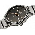 Внимание сразу перетягивает на себя антрацитовый циферблат, дополненный 12 роскошными бриллиантами в 0,080 карат. Часы сделаны из высокотехнологичной плазменной керамикиВысокотехнологичная плазменная керамикаИнновационный материал, технология запатентована. Выплавление керамики осуществляется в печи при 20 000 °C, белоснежный материал под воздействием ультравысокой температуры приобретает уникальный блеск, присущий металлам. с металлическим отливом, материал отличается лёгкостью и устойчивостью к царапинам. Автоматический швейцарский механизм ETA C07.611 с увеличенным 80-часовым запасом хода. Сапфировое стекло. Люминесцентная подсветкаЛюминесцентное покрытиеПозволяет считывать показания времени в темноте. Производители наносят на стрелки, часовые индексы, безель или поверхность циферблата светонакопительный состав, дающий холодное свечение.. Водонепроницаемость 50 метров. . Индикация числа. Диаметр корпуса: 40 мм.