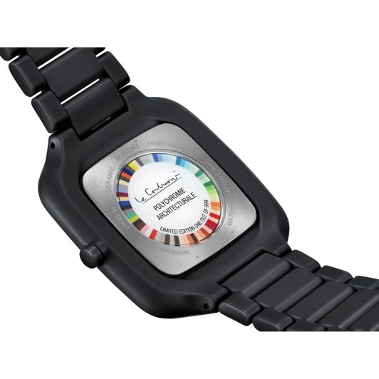 Мужские швейцарские часы Rado Тrue Square Thinline x Les Couleur Le Corbusier R27062152 являют собой совершенство стиля и технологий. Эти исключительные часы отдают дань уважения культовым архитектурным цветам Ле Корбюзье. Корпус и браслет из высокотехнологичной керамикиВысокотехнологичная керамикаИнновационный запатентованный Rado материал с гладкой или матовой поверхностью. Керамика за счёт кристаллической структуры обладает повышенной устойчивостью от возникновения царапин. Материал способен принимать температуру тела человека, обеспечивая невероятный комфорт при ношении. и титана демонстрируют смелую и современную эстетику, воплощая суть современного дизайна. Сапфировое стеклоСапфировое стеклоПрочный и надёжный материал из кристалла сапфира синтетического происхождения, характеризующийся особой твёрдостью и устойчивостью к царапинам и повреждениям. на 100% устойчиво к царапинам. Часы оснащенные надежным кварцевым механизмом Rado калибра R420, обеспечивают точное хронометрирование и непринужденную элегантность. Эти часы выпущены ограниченной серией в 999 экземпляров и предлагают эксклюзивность и ощущение редкости.