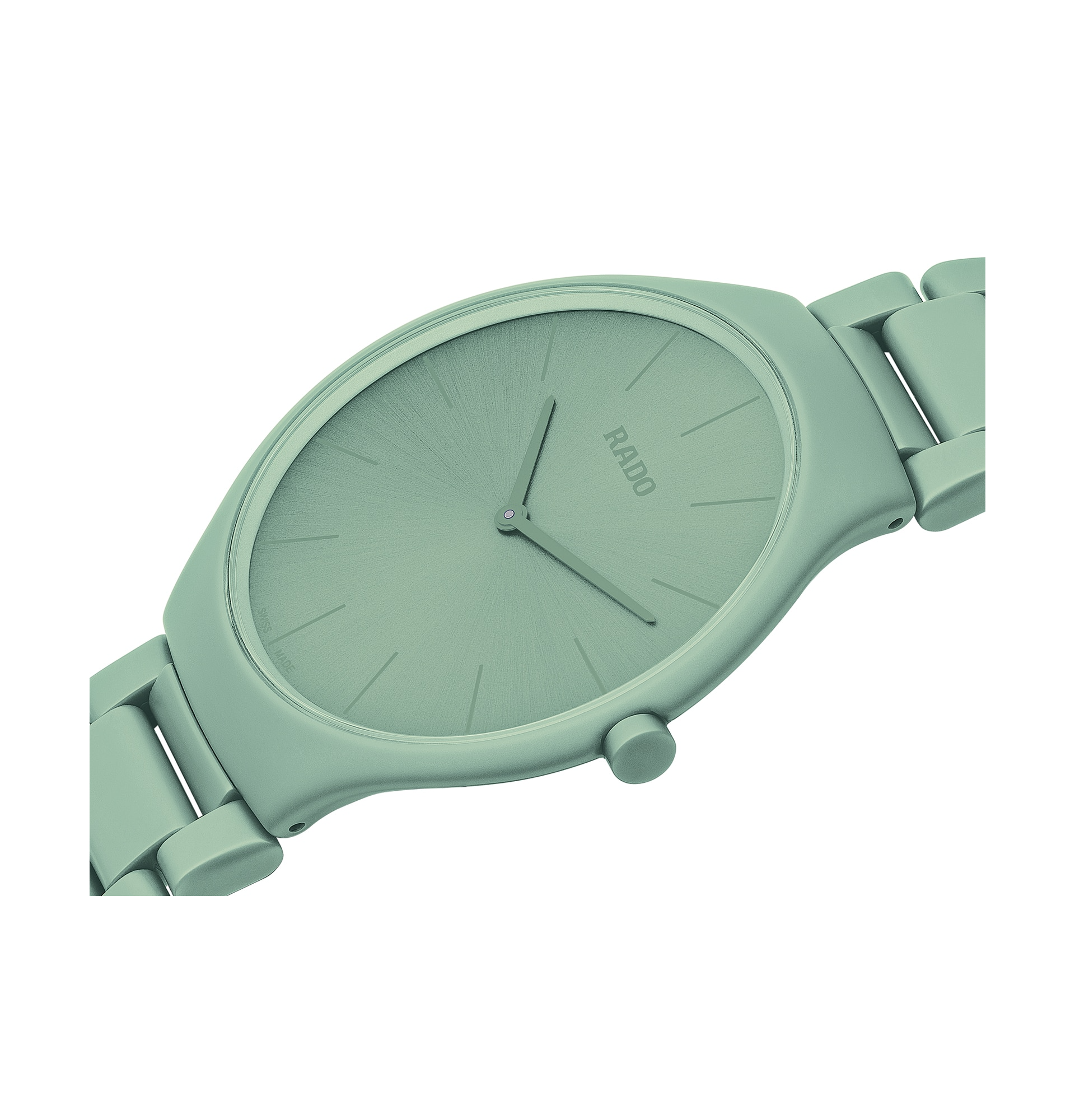 Швейцарские часы из лимитированной серии 999 экземпляров Rado True Thinline Le Corbusier R27096662, кварцевый механизм с высокой точностью. Сапфировое стекло устойчивое к появлению царапин, обладающее высокой прозрачностью. Класс водозащиты: 30 метров, позволит защитить корпус от случайных брызг или капель дождя. Корпус часов изготовлен из керамики, зеленого цвета.