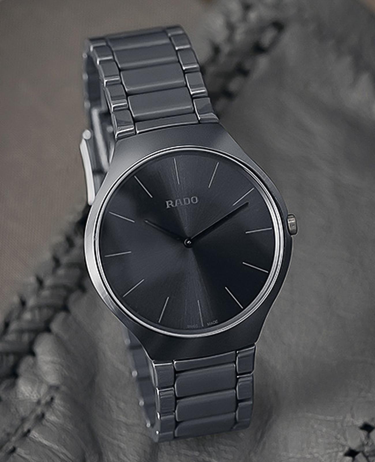Мужские кварцевые швейцарские часы Rado True R27262102. Корпус и браслет часов изготовлены из высокотехнологичной керамикиВысокотехнологичная керамикаИнновационный запатентованный Rado материал с гладкой или матовой поверхностью. Керамика за счёт кристаллической структуры обладает повышенной устойчивостью от возникновения царапин. Материал способен принимать температуру тела человека, обеспечивая невероятный комфорт при ношении.. Браслет на застёжке-бабочке с кнопкамиЗастёжка "бабочка"Такой вид застёжки дополняется предохранителями, помогающими избежать случайного раскрытия браслета. Обладают изящным исполнением. . Сапфировое стеклоСапфировое стеклоПрочный и надёжный материал из кристалла сапфира синтетического происхождения, характеризующийся особой твёрдостью и устойчивостью к царапинам и повреждениям. устойчивое к мелким механическим повреждениям. Класс водозащиты: 30 метров, позволит защитить корпус от случайных брызг или капель дождя.