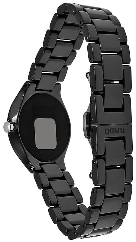 Чёрные наручные часы отличаются привлекательным металлическим блеском, однако при изготовлении не использовано ни грамма стали. Они сделаны из высокотехнологичной керамикиВысокотехнологичная керамикаИнновационный запатентованный Rado материал с гладкой или матовой поверхностью. Керамика за счёт кристаллической структуры обладает повышенной устойчивостью от возникновения царапин. Материал способен принимать температуру тела человека, обеспечивая невероятный комфорт при ношении., способной приобретать температурный режим кожи и обеспечивать комфортное ношение при любых условиях. Лаконичное исполнение позволяет использовать модель как изысканное дополнение к деловому или повседневному образу. Сапфировое стеклоСапфировое стеклоПрочный и надёжный материал из кристалла сапфира синтетического происхождения, характеризующийся особой твёрдостью и устойчивостью к царапинам и повреждениям.. Водозащита 50 метров. . Диаметр корпуса: 30 мм.