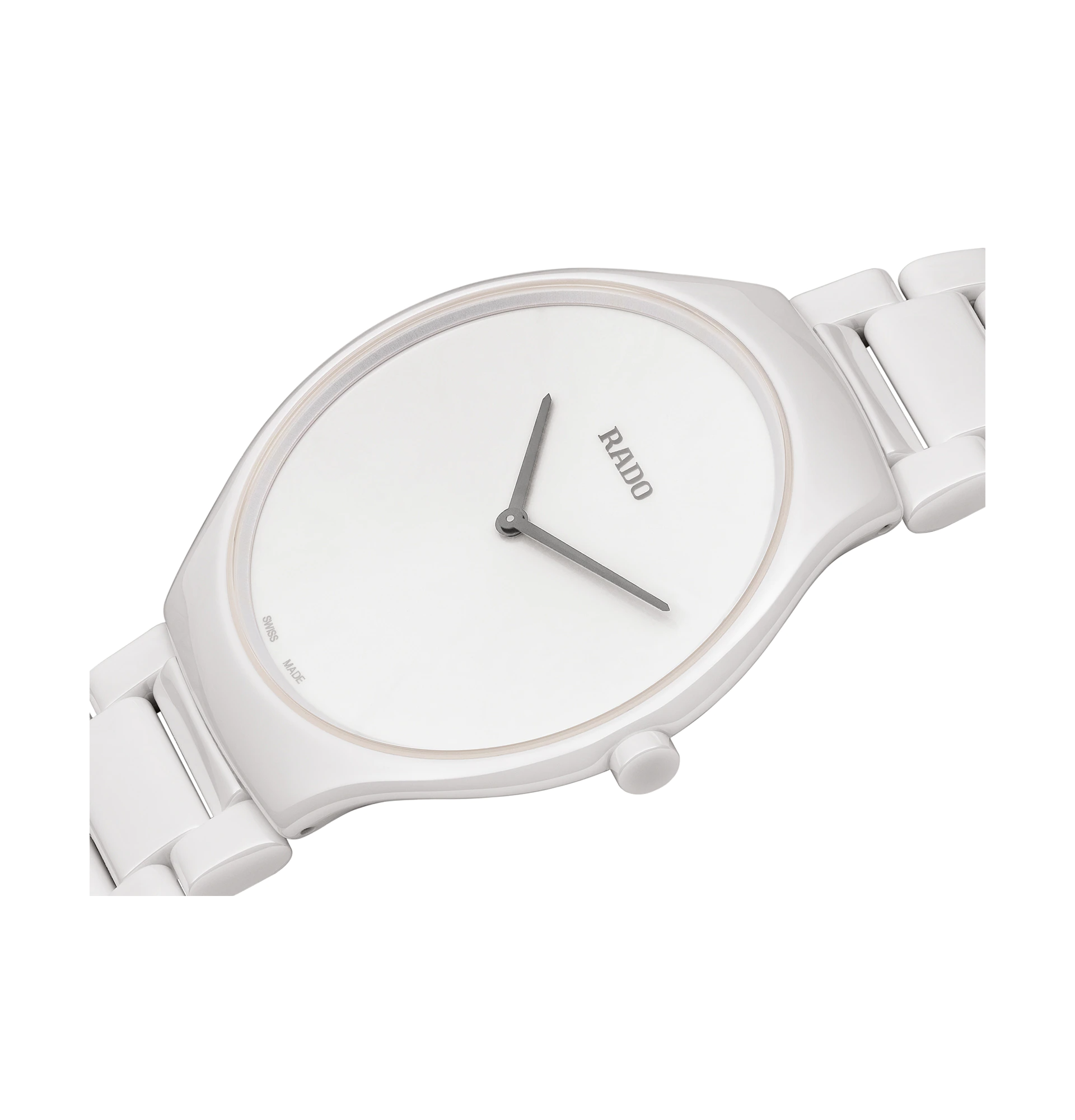 Модель создана в сотрудничестве с Grandi Giardini Italiani - ассоциацией садов Италии Rado True Thinline R27957012 , кварцевый механизм с высокой точностью. Сапфировое стекло устойчивое к появлению царапин, обладающее высокой прозрачностью. Класс водозащиты: 30 метров, позволит защитить корпус от случайных брызг или капель дождя. Корпус часов изготовлен из керамики, цвета.