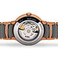 Наручные часы премиальной категории объединяют безупречность стиля и высокую точность хода, позволяя чувствовать себя на высоте в любой ситуации. Циферблат украшен 12 роскошными бриллиантами в 0,045 карат. Привлекательно выглядит сочетание нержавеющей стали 316L с цветным PVD-покрытиемPVDУльтратонкое покрытие наносится в технике вакуумного напыления, сочетает в себе нитрид титана особой прочности со слоем золота или оксида хрома. Несёт в себе декоративную или защитную функцию. и высокотехнологичной керамикиВысокотехнологичная керамикаИнновационный запатентованный Rado материал с гладкой или матовой поверхностью. Керамика за счёт кристаллической структуры обладает повышенной устойчивостью от возникновения царапин. Материал способен принимать температуру тела человека, обеспечивая невероятный комфорт при ношении., такое решение нашло воплощение в браслете. Модель оснащена автоматическим механизмом ETA C07.611, сохраняющим 80-часовой запас хода. Прозрачная задняя крышка. Стекло из сапфира. Индикация числа. Диаметр корпуса: 38 мм.