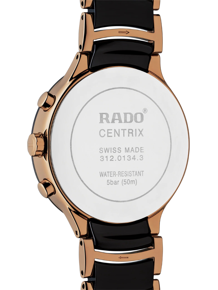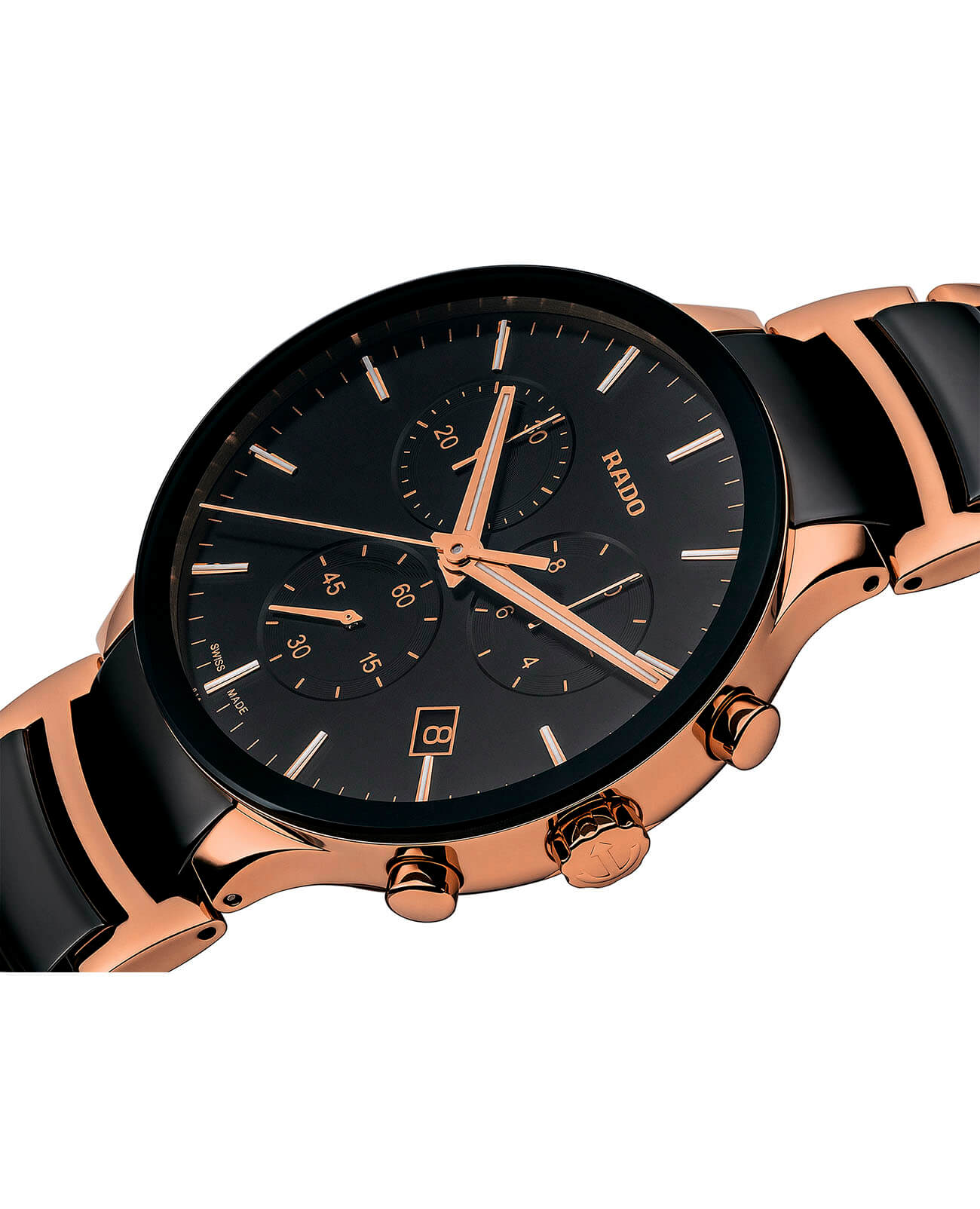 Премиальный хронографХронографФункция позволяет измерять отрезки времени с особой точностью: часы, минуты, секунды. Верным признаком хронографа является наличие на циферблате 3 дополнительных окошек-счётчиков. отличается лаконичным оформлением и использованием сдержанных оттенков. Такое исполнение позволяет носить часы с деловым, повседневным образом, костюмом на торжественный случай. Внутри надёжного корпуса из высокотехнологичной керамикиВысокотехнологичная керамикаИнновационный запатентованный Rado материал с гладкой или матовой поверхностью. Керамика за счёт кристаллической структуры обладает повышенной устойчивостью от возникновения царапин. Материал способен принимать температуру тела человека, обеспечивая невероятный комфорт при ношении. находится кварцевый механизм ETA 251.274 с 22 камнями. Браслет из нержавеющей стали 316L с керамическими вставками и PVD-покрытиемPVDУльтратонкое покрытие наносится в технике вакуумного напыления, сочетает в себе нитрид титана особой прочности со слоем золота или оксида хрома. Несёт в себе декоративную или защитную функцию. "розовое золото". Сапфировое стекло. Люминесцентная подсветкаЛюминесцентное покрытиеПозволяет считывать показания времени в темноте. Производители наносят на стрелки, часовые индексы, безель или поверхность циферблата светонакопительный состав, дающий холодное свечение.. Апертура даты. Диаметр корпуса: 40 мм.