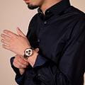 Мужские кварцевые часы Rado Centrix Chronograph — это гармоничное сочетание художественного дизайна и технического совершенства. Корпус диаметром 41 мм и толщиной 11,4 мм выполнен из нержавеющей стали с PVD-покрытиемPVDУльтратонкое покрытие наносится в технике вакуумного напыления, сочетает в себе нитрид титана особой прочности со слоем золота или оксида хрома. Несёт в себе декоративную или защитную функцию. розового золота. Циферблат цвета шампань с эффектом «солнечные лучи» оформлен розовыми индексами с люминесцентным покрытиемЛюминесцентное покрытиеПозволяет считывать показания времени в темноте. Производители наносят на стрелки, часовые индексы, безель или поверхность циферблата светонакопительный состав, дающий холодное свечение. Super-Luminova®, обеспечивающим отличную читаемость в темноте. Циферблат защищён выпуклым сапфировым стекломСапфировое стеклоПрочный и надёжный материал из кристалла сапфира синтетического происхождения, характеризующийся особой твёрдостью и устойчивостью к царапинам и повреждениям. с антибликовым покрытиемАнтибликовое покрытиеСлой оксида металла в 0,13-0,3 микрон, благодаря которому стекло часов не бликует и не отражает свет. Антибликовое покрытие уменьшает отражение света в 10 раз, обеспечивая отличную читаемость показателей циферблата. с обеих сторон. Механизм — швейцарский кварцевый с функцией хронографаХронографФункция позволяет измерять отрезки времени с особой точностью: часы, минуты, секунды. Верным признаком хронографа является наличие на циферблате 3 дополнительных окошек-счётчиков., оснащённый 22 камнями и технологиями Precidrive и Heavydrive, обеспечивающими точность хода ±10 секунд в год. Циферблат включает три субциферблата: 30-минутный счётчик, индикатор одной десятой секунды и малые секунды в положении 6 часов. Окошко даты расположено в положении 4 часов. Часы оснащены браслетом из полированной нержавеющей стали с вставками из высокотехнологичной керамикиВысокотехнологичная керамикаИнновационный запатентованный Rado материал с гладкой или матовой поверхностью. Керамика за счёт кристаллической структуры обладает повышенной устойчивостью от возникновения царапин. Материал способен принимать температуру тела человека, обеспечивая невероятный комфорт при ношении. коричневого цвета и застёжка «бабочка» с кнопкамиЗастёжка "бабочка"Такой вид застёжки дополняется предохранителями, помогающими избежать случайного раскрытия браслета. Обладают изящным исполнением. из матовой стали. Водонепроницаемость 50 м позволяет использовать часы в повседневных условиях. Гарантия — 5 лет. Идеальный выбор для тех, кто ценит точность, стиль и швейцарское качество.