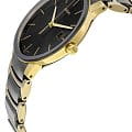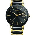 Традиционный круглый циферблат чёрного цвета с золотистыми стрелками и метками имеет узор «солнечные лучи», лаконичное исполнение делает аксессуар универсальным вариантом для любого события. Корпус и браслет выполнены из хирургической стали 316L, браслет сделан в сочетании с высокотехнологичной керамикойВысокотехнологичная керамикаИнновационный запатентованный Rado материал с гладкой или матовой поверхностью. Керамика за счёт кристаллической структуры обладает повышенной устойчивостью от возникновения царапин. Материал способен принимать температуру тела человека, обеспечивая невероятный комфорт при ношении.. В основе работы находится кварцевый механизм ETA 955.112 с высокой точностью хода. Сапфировое стекло устойчиво к образованию царапин на поверхности. Сохранение водонепроницаемости при давлении до 3 бар. PVD-покрытиеPVDУльтратонкое покрытие наносится в технике вакуумного напыления, сочетает в себе нитрид титана особой прочности со слоем золота или оксида хрома. Несёт в себе декоративную или защитную функцию. цвета «жёлтое золото». Отображение даты. Диаметр корпуса: 38 мм.
