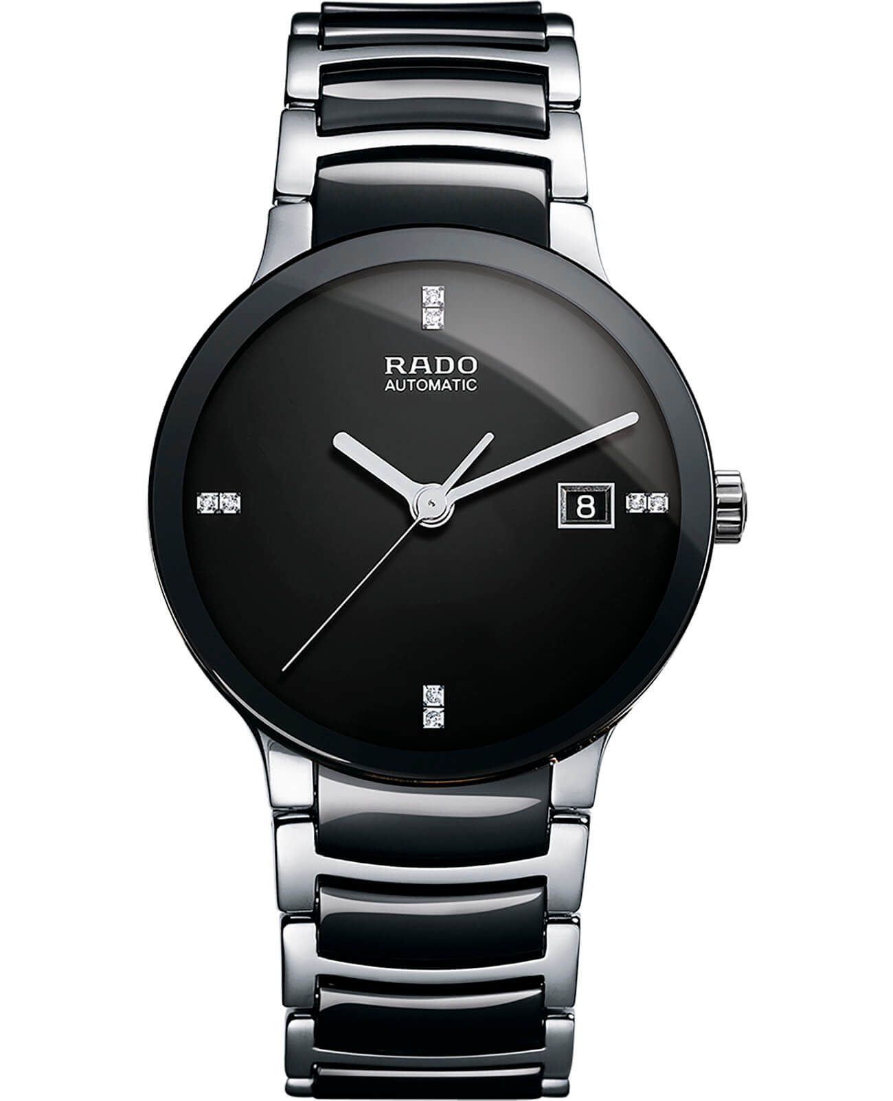 Премиальный аксессуар отражает минимализм и классический стиль, что неизменно добавляет элегантности. Чёрный циферблат не имеет лишних деталей, в качестве декорирующих элементов выступают 8 бриллиантов оттенка Top Wesselton в 0,028 карат. Наручные часы оснащены швейцарским автоматическим механизмом ETA C07.631 с увеличенным запасом хода до 80 часов. Скелетонизированная задняя крышка. Водонепроницаемость 30 метров. Сапфировое стекло. Стальной браслет со вставками из высокотехнологичной керамикиВысокотехнологичная керамикаИнновационный запатентованный Rado материал с гладкой или матовой поверхностью. Керамика за счёт кристаллической структуры обладает повышенной устойчивостью от возникновения царапин. Материал способен принимать температуру тела человека, обеспечивая невероятный комфорт при ношении.. . Прямоугольное окошко даты. Диаметр корпуса: 38 мм.