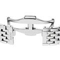 Стальной браслет закреплен на удобной и надёжной застёжке-бабочке с кнопкамиЗастёжка "бабочка"Такой вид застёжки дополняется предохранителями, помогающими избежать случайного раскрытия браслета. Обладают изящным исполнением. , обеспечивая комфортное и безопасное крепление на запястье.