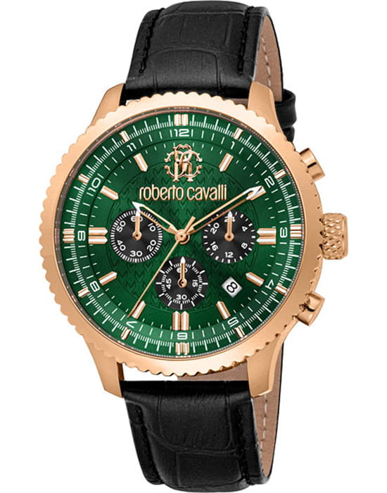 Roberto Cavalli Stile RC5G127L0035 — мужская кварцевая модель с ярко выраженным спортивным характером, сочетающая функциональность и надёжность. Корпус диаметром 44 мм выполнен из нержавеющей стали с PVD-покрытиемPVDУльтратонкое покрытие наносится в технике вакуумного напыления, сочетает в себе нитрид титана особой прочности со слоем золота или оксида хрома. Несёт в себе декоративную или защитную функцию., сочетание матовых и полированных поверхностей придаёт часам современный вид. Защитную роль выполняет прочное минеральное стеклоМинеральное стеклоМинеральное стекло представляет собой искусственно выращенный минерал кварца. Такое стекло отличается особой устойчивостью к повреждениям и царапинам. Уступает по некоторым качествам сапфировому стеклу., устойчивое к повседневным воздействиям. Водозащита 100 м позволяет без опасений использовать модель во время плавания и активного отдыха. На циферблате реализованы функции хронографаХронографФункция позволяет измерять отрезки времени с особой точностью: часы, минуты, секунды. Верным признаком хронографа является наличие на циферблате 3 дополнительных окошек-счётчиков. и даты, благодаря чему часы сочетают спортивную эстетику и практичность. Кожаный ремешок шириной 20 мм подчеркивает классический стиль, обеспечивает удобство в ношении и гармонично завершает дизайн, делая модель универсальным спутником как для повседневного образа, так и для активного досуга.