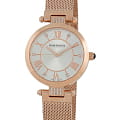 Fashion-модель в розово-золотистом цвете декорирована цирконами. Высокую точность хода обеспечивает кварцевый калибр. Минеральное стекло с закаленной поверхностью. Водостойкость до 50 метров. Корпус и браслет плетения Mesh из нержавеющей стали 316L с PVD-покрытиемPVDУльтратонкое покрытие наносится в технике вакуумного напыления, сочетает в себе нитрид титана особой прочности со слоем золота или оксида хрома. Несёт в себе декоративную или защитную функцию..