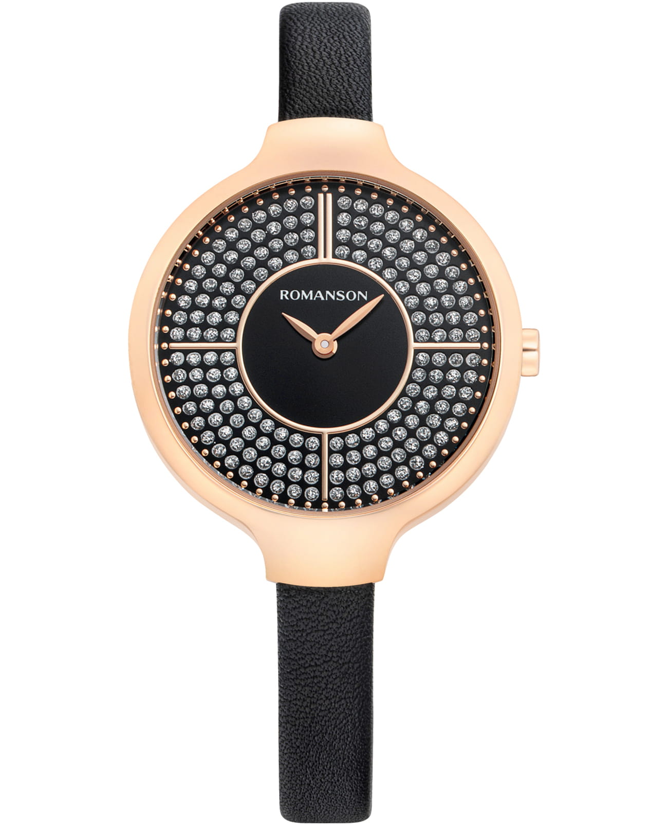 Женские наручные часы с кристаллами Romanson RL0B13LLR(BK), кварцевый механизм с высокой точностью. Класс водозащиты: 30 метров, позволит защитить корпус от случайных брызг или капель дождя. Корпус часов изготовлен из стали, цвета.