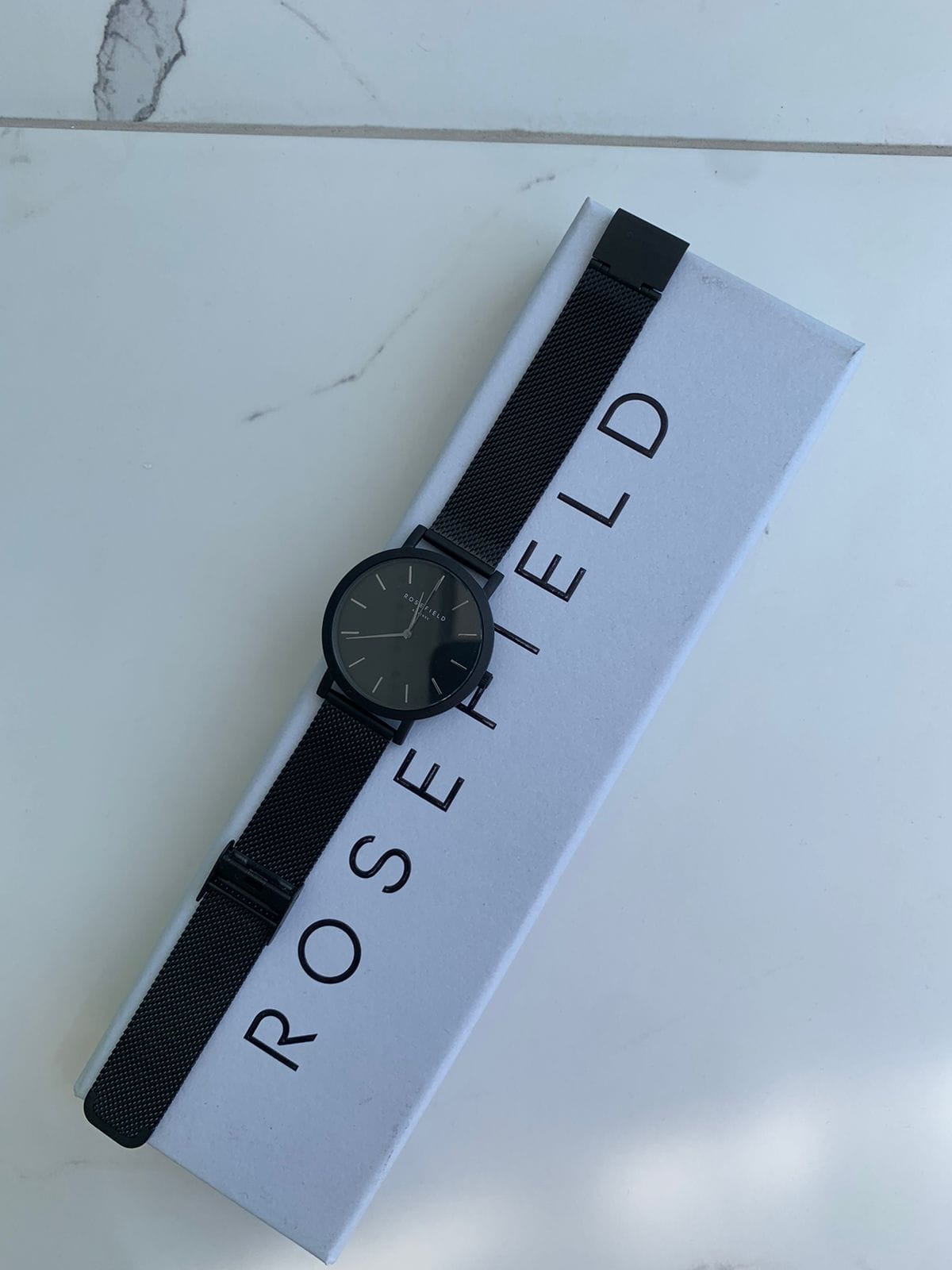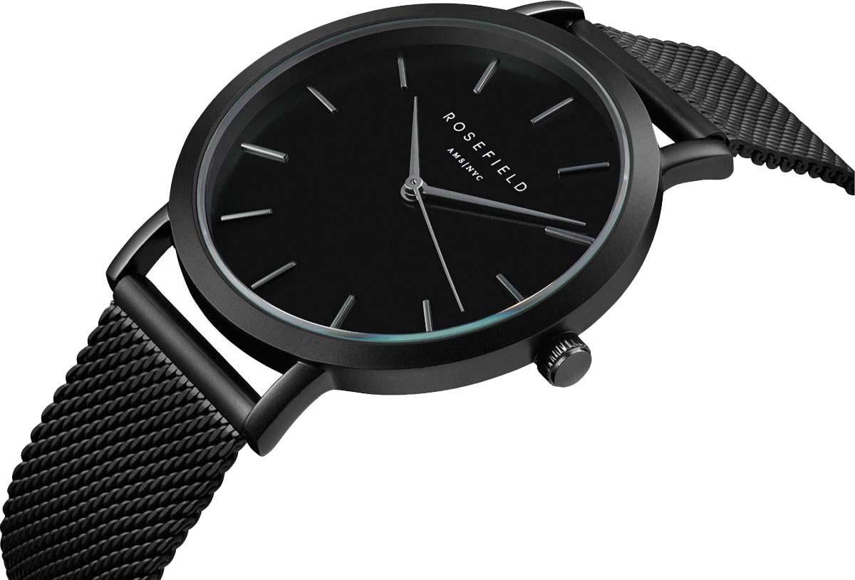 Американские женские наручные часы с кварцевым механизмом Rosefield The Mercer MBB-M43, кварцевый механизм с высокой точностью. Класс водозащиты: 30 метров, позволит защитить корпус от случайных брызг или капель дождя. Корпус часов изготовлен из стали, черного цвета.