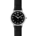 Стальной корпус круглой формы выполнен из нержавеющей стали, что придает часам прочность и долговечность. Циферблат с цифрами и метками в виде штрихов надежно защищен закаленным минеральным стекломМинеральное стеклоМинеральное стекло представляет собой искусственно выращенный минерал кварца. Такое стекло отличается особой устойчивостью к повреждениям и царапинам. Уступает по некоторым качествам сапфировому стеклу., что предотвращает появление царапин и повреждений.