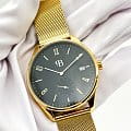 Металлический браслет миланского плетения на раскладном замкеРаскладной замокДанный вариант застежки используется только на часах с металлическим браслетом. Отличительная особенность такого крепления в том, что длина браслета становится универсальной и вы можете самостоятельно отрегулировать нужный вам размер – застежка просто двигается по браслету часов. изготовлен из нержавеющей стали с PVD-покрытиемPVDУльтратонкое покрытие наносится в технике вакуумного напыления, сочетает в себе нитрид титана особой прочности со слоем золота или оксида хрома. Несёт в себе декоративную или защитную функцию., что обеспечивает прочность и долговечность.