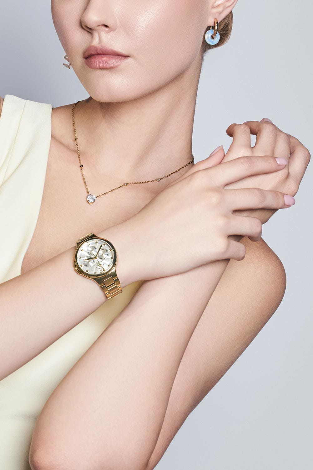 Женские кварцевые часы Santa Barbara Polo & Racquet Club — это элегантный аксессуар, подчеркивающий романтичное настроение. Корпус диаметром 35 мм и высотой 42 мм выполнен из латуни с IP-покрытиемIP-покрытиеМетод ионного напыления. Демонстрирует повышенную устойчивость к истиранию, окислению и химическим веществам. Под воздействием высокого давления и температуры около 1500°C молекулы металла надёжно соединяются с частицами корпуса часов.. Циферблат серебристого цвета с гильошированной текстурой украшен фирменным логотипом и накладными метками в виде точек, а также арабской цифрой 12. Указатели дня недели и даты вынесены на отдельные субциферблаты, также присутствует индикация 24-часового формата времени. Циферблат защищён минеральным стекломМинеральное стеклоМинеральное стекло представляет собой искусственно выращенный минерал кварца. Такое стекло отличается особой устойчивостью к повреждениям и царапинам. Уступает по некоторым качествам сапфировому стеклу.. Механизм — кварцевый калибр VX3JE1. Часы оснащены браслетом из нержавеющей стали с IP-покрытиемIP-покрытиеМетод ионного напыления. Демонстрирует повышенную устойчивость к истиранию, окислению и химическим веществам. Под воздействием высокого давления и температуры около 1500°C молекулы металла надёжно соединяются с частицами корпуса часов. на раскладной застёжкеРаскладная застёжкаТакой тип застёжки используется только на браслетах из металла. Она никогда не раскрывается полностью, происходит разделение на 2 и более частей. Раскладывающая застёжка снизит вероятность потери часов к минимуму.. Водонепроницаемость 50 м позволяет использовать часы в повседневных условиях. Идеальный выбор для тех, кто ценит женственность, стиль и качество.