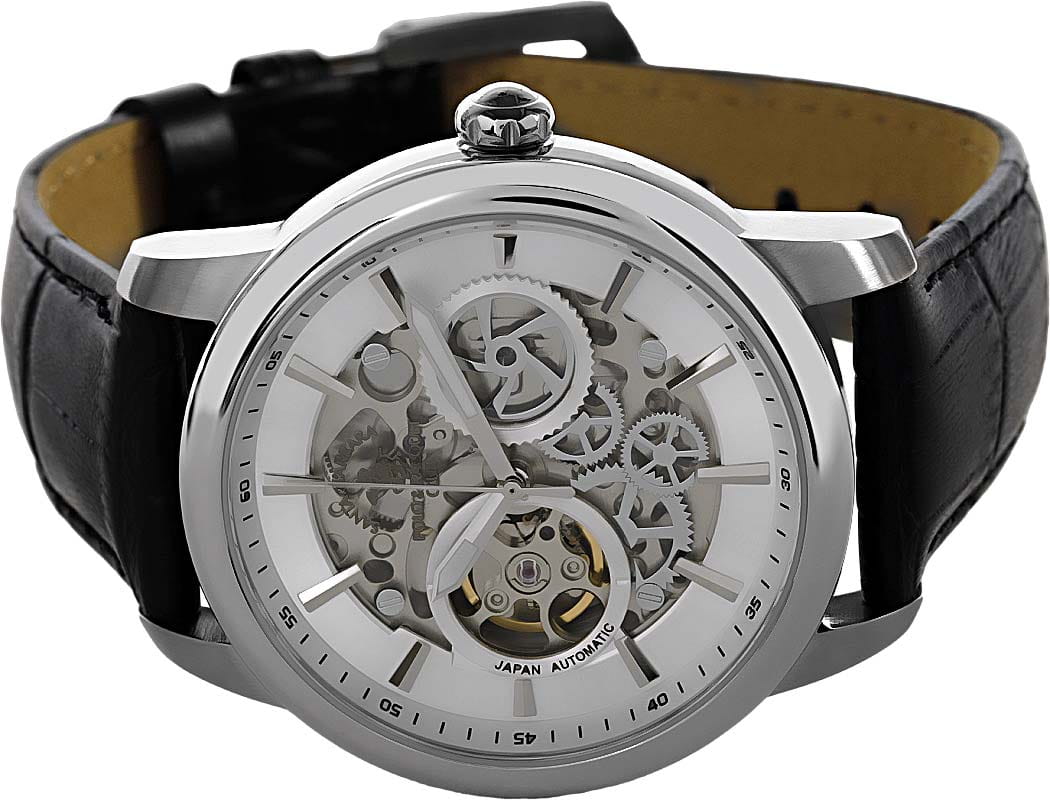 Мужские механические часы с автоподзаводом Santa Barbara Polo & Racquet Club — это демонстрация инженерного искусства и изящества. Корпус диаметром 43,8 мм и высотой 52 мм выполнен из стали. Циферблат серебристого цвета частично скелетонизирован, что позволяет наблюдать за работой механизма. Двухуровневый циферблат оформлен по технологии Sunray («солнечные лучи»), дополнен накладными метками в виде штрихов и фирменным логотипом. Стрелки с люминесцентным покрытиемЛюминесцентное покрытиеПозволяет считывать показания времени в темноте. Производители наносят на стрелки, часовые индексы, безель или поверхность циферблата светонакопительный состав, дающий холодное свечение., обеспечивающим хорошую читаемость в темноте. Циферблат защищён минеральным стекломМинеральное стеклоМинеральное стекло представляет собой искусственно выращенный минерал кварца. Такое стекло отличается особой устойчивостью к повреждениям и царапинам. Уступает по некоторым качествам сапфировому стеклу.. Прозрачная задняя крышка открывает вид на декорированный механизм. Часы оснащены кожаным ремешком с стандартной застёжкой. Водонепроницаемость 50 м позволяет использовать часы в повседневных условиях. Идеальный выбор для тех, кто ценит технологичность, стиль и качество.