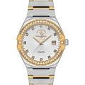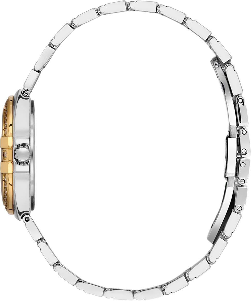Женские кварцевые часы Santa Barbara Polo & Racquet Club — это элегантный аксессуар для тех, кто ценит утончённый дизайн и стильные детали. Корпус диаметром 30 мм выполнен из нержавеющей стали 316L. БезельБезельВнешний ободок, закрепляющий стекло. В спортивных часах так называется поворотное кольцо с делениями на циферблате, выполняет роль таймера – замеряет отрезки времени на шкале. Неподвижный безель – элемент декора. Однонаправленно вращающийся безель на дайверских часах позволяет фиксировать моменты погружения и выныривания на поверхность. с частичным IP-покрытиемIP-покрытиеМетод ионного напыления. Демонстрирует повышенную устойчивость к истиранию, окислению и химическим веществам. Под воздействием высокого давления и температуры около 1500°C молекулы металла надёжно соединяются с частицами корпуса часов. жёлтого золота, с полированной отделкой, украшен кристаллами. Циферблат серебристого цвета оформлен по технологии Sunray («солнечные лучи»), дополнен накладными метками в виде точек, инкрустированных кристаллами, и фирменным логотипом. Окошко даты расположено в положении 3 часов. Стрелки клиновидной формы, в стиле Dauphine, с люминесцентным покрытиемЛюминесцентное покрытиеПозволяет считывать показания времени в темноте. Производители наносят на стрелки, часовые индексы, безель или поверхность циферблата светонакопительный состав, дающий холодное свечение., обеспечивающим хорошую читаемость в темноте. Циферблат защищён минеральным стеклом. Часы оснащены стальным браслетом с частичным IP-покрытиемIP-покрытиеМетод ионного напыления. Демонстрирует повышенную устойчивость к истиранию, окислению и химическим веществам. Под воздействием высокого давления и температуры около 1500°C молекулы металла надёжно соединяются с частицами корпуса часов. и застёжкой «бабочка» с кнопкамиЗастёжка "бабочка"Такой вид застёжки дополняется предохранителями, помогающими избежать случайного раскрытия браслета. Обладают изящным исполнением. . Водонепроницаемость 50 м позволяет использовать часы в повседневных условиях. Идеальный выбор для тех, кто ценит изысканность, блеск и качество.