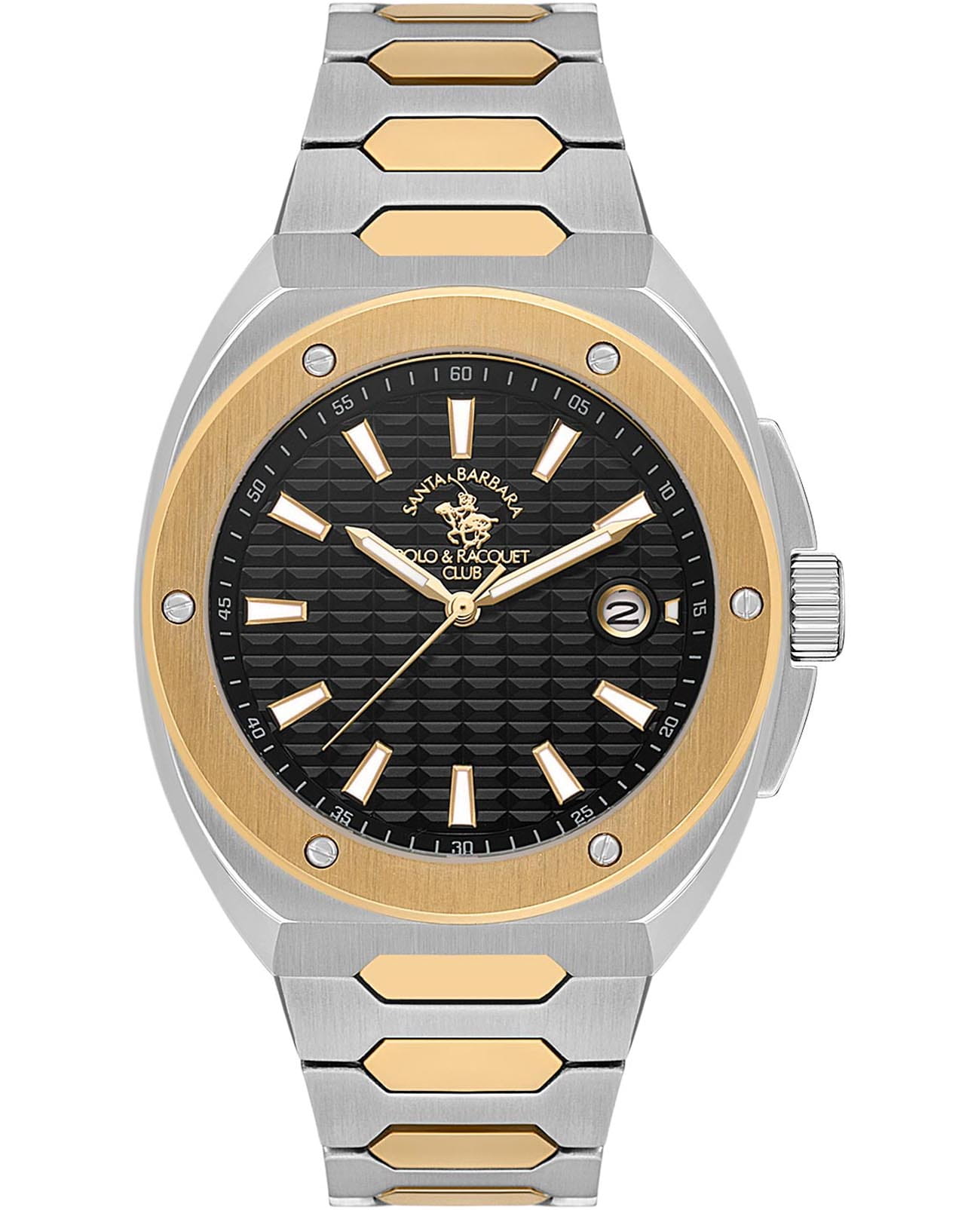 Мужские кварцевые Santa Barbara Polo & Racquet Club Legend  SB.1.10557-3 — воплощение элегантности и технического совершенства. Корпус из стали 316L серебристого цвета с безелемБезельВнешний ободок, закрепляющий стекло. В спортивных часах так называется поворотное кольцо с делениями на циферблате, выполняет роль таймера – замеряет отрезки времени на шкале. Неподвижный безель – элемент декора. Однонаправленно вращающийся безель на дайверских часах позволяет фиксировать моменты погружения и выныривания на поверхность. с IP-покрытиемIP-покрытиеМетод ионного напыления. Демонстрирует повышенную устойчивость к истиранию, окислению и химическим веществам. Под воздействием высокого давления и температуры около 1500°C молекулы металла надёжно соединяются с частицами корпуса часов., диаметром 41.5 мм, что делает их устойчивыми к внешним воздействиям и придает благородный вид. Стрелки и метки с люминесцентным покрытиемЛюминесцентное покрытиеПозволяет считывать показания времени в темноте. Производители наносят на стрелки, часовые индексы, безель или поверхность циферблата светонакопительный состав, дающий холодное свечение., обеспечивающим хорошую читаемость в темноте. Циферблат защищён минеральным стекломМинеральное стеклоМинеральное стекло представляет собой искусственно выращенный минерал кварца. Такое стекло отличается особой устойчивостью к повреждениям и царапинам. Уступает по некоторым качествам сапфировому стеклу., устойчивое к царапинам и механическим повреждениям. Окошко даты находится в положении 3 часа. Браслет из стали с IP-покрытиемIP-покрытиеМетод ионного напыления. Демонстрирует повышенную устойчивость к истиранию, окислению и химическим веществам. Под воздействием высокого давления и температуры около 1500°C молекулы металла надёжно соединяются с частицами корпуса часов. с застёжкой «бабочка»Застёжка "бабочка"Такой вид застёжки дополняется предохранителями, помогающими избежать случайного раскрытия браслета. Обладают изящным исполнением. , обеспечивающим комфортное и безопасное ношение. Водонепроницаемость 50 метров позволит защитить корпус от случайных брызг или капель дождя. Идеальный выбор для тех, кто ценит элегантный дизайн и качество.
