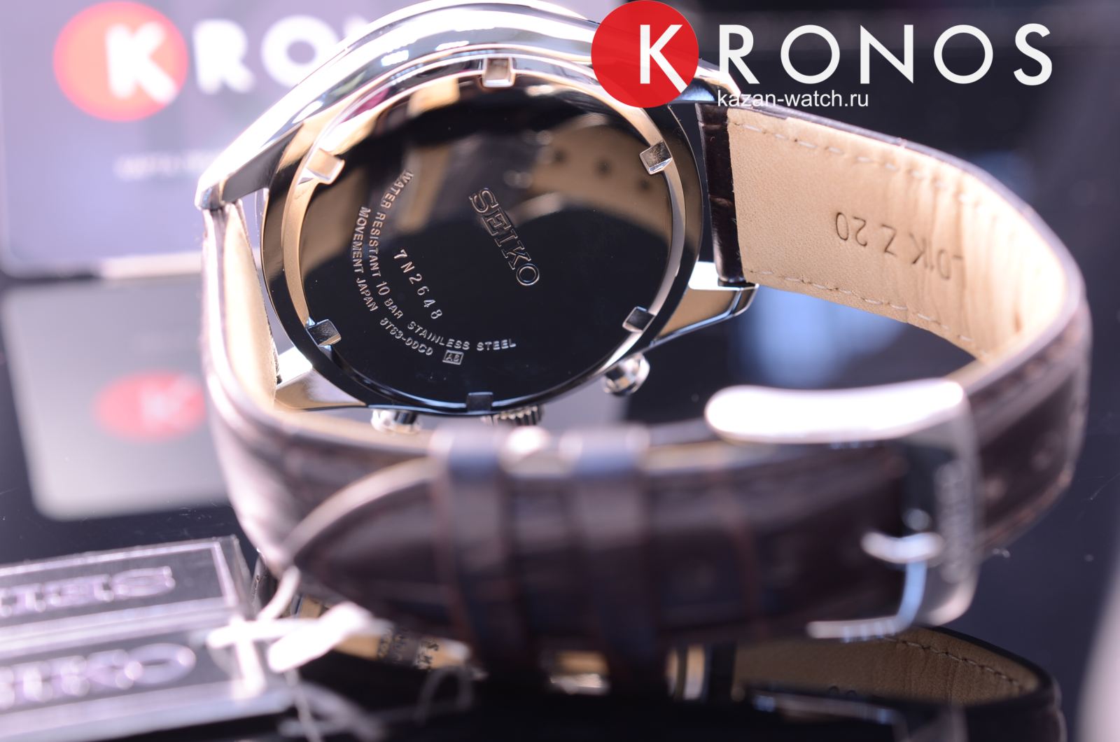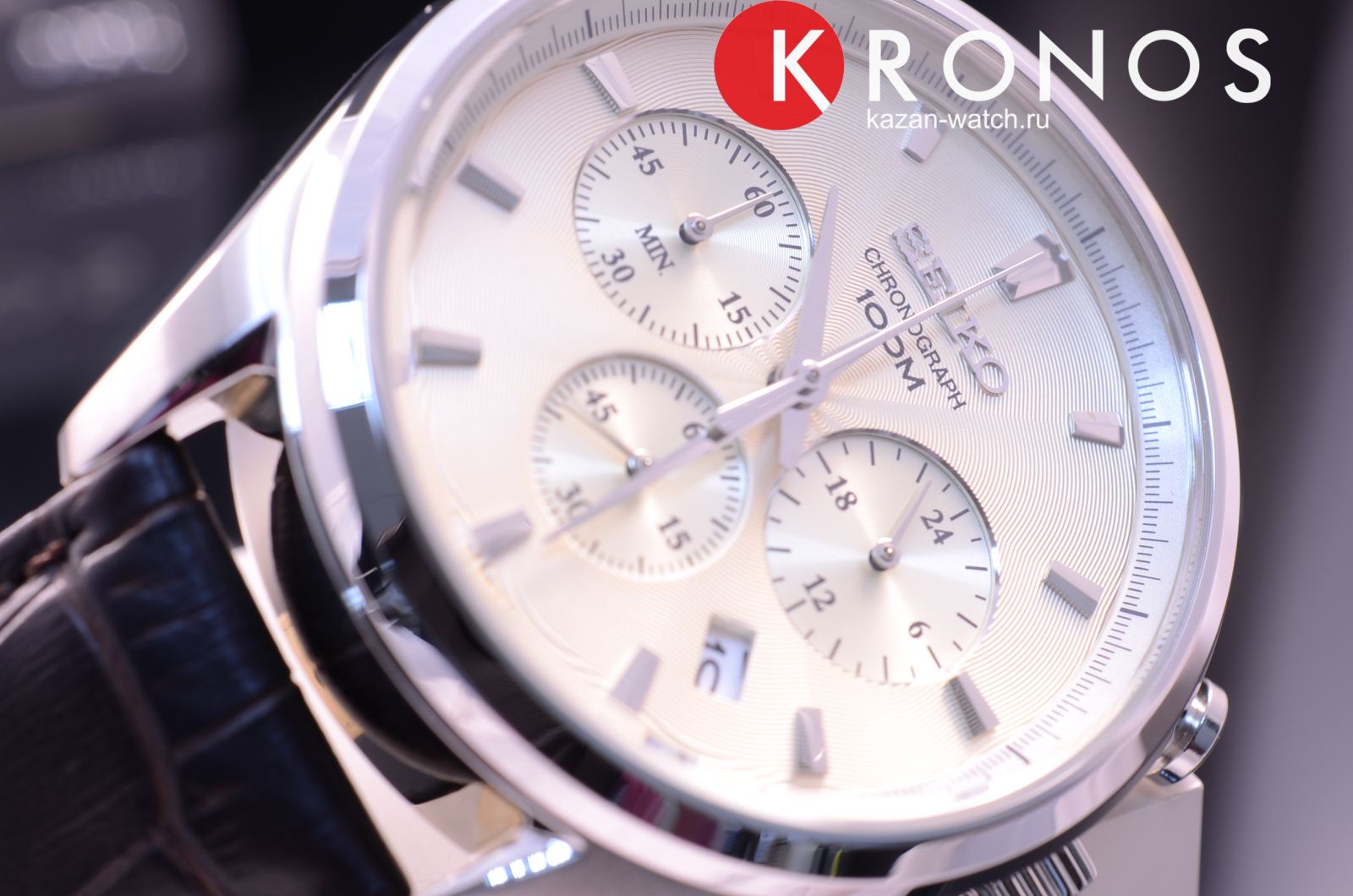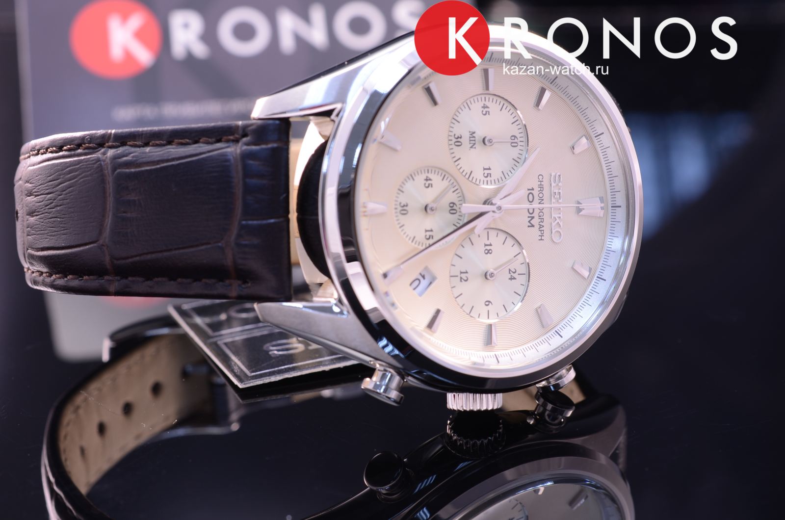Наручные часы имеют стильный циферблат, дополненный изящным узором – всё в рамках классического стиля. ХронографХронографФункция позволяет измерять отрезки времени с особой точностью: часы, минуты, секунды. Верным признаком хронографа является наличие на циферблате 3 дополнительных окошек-счётчиков. наделён надёжным корпусом, сделанным из нержавеющей стали 316L. Материал был выбран благодаря устойчивости к царапинам и возникновению коррозии. Привлекательным решением стал ремешок из натуральной телячьей кожи с тиснением под крокодиловую кожу. Модель демонстрирует высокую точность хода ±15 секунд в месяц благодаря японскому кварцевому механизму Seiko 8T63. Выпуклое минеральное стекло Hardlex – собственная разработка бренда. Задняя крышка завинчивается, сохраняя герметичность конструкции при давлении 10 бар. Функции: секундомер, отображение текущего числа. Диаметр корпуса: 42,2 мм.