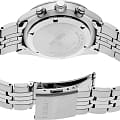 Мужские японские часы Seiko SSB427P1 c хронографомХронографФункция позволяет измерять отрезки времени с особой точностью: часы, минуты, секунды. Верным признаком хронографа является наличие на циферблате 3 дополнительных окошек-счётчиков., кварцевый механизм с высокой точностью. Минеральное стеклоМинеральное стеклоМинеральное стекло представляет собой искусственно выращенный минерал кварца. Такое стекло отличается особой устойчивостью к повреждениям и царапинам. Уступает по некоторым качествам сапфировому стеклу., устойчивое к появлению царапин, обладающее высокой прозрачностью. Класс водозащиты: 100 метров, позволит плавать, нырять и заниматься другими водными видами спорта. Корпус и браслет часов изготовлен из стали. Неподвижный безельБезельВнешний ободок, закрепляющий стекло. В спортивных часах так называется поворотное кольцо с делениями на циферблате, выполняет роль таймера – замеряет отрезки времени на шкале. Неподвижный безель – элемент декора. Однонаправленно вращающийся безель на дайверских часах позволяет фиксировать моменты погружения и выныривания на поверхность. со шкалой тахиметраТахиметрРазмеченная шкала, располагается на ободке или безеле часов. Тахиметр позволяет рассчитать скорость на определённом участке пути, расстояние измеряется в километрах или милях.. Стрелки и метки с люминесцентным покрытиемЛюминесцентное покрытиеПозволяет считывать показания времени в темноте. Производители наносят на стрелки, часовые индексы, безель или поверхность циферблата светонакопительный состав, дающий холодное свечение. LumiBrite. Браслет на раскладной застёжкеРаскладная застёжкаТакой тип застёжки используется только на браслетах из металла. Она никогда не раскрывается полностью, происходит разделение на 2 и более частей. Раскладывающая застёжка снизит вероятность потери часов к минимуму. с кнопками. СекундомерСекундомерСекундоме́р — прибор, способный измерять интервалы времени с точностью до долей секунды.. Окошко даты находится в положении между 4 и 5 часов.
