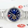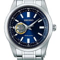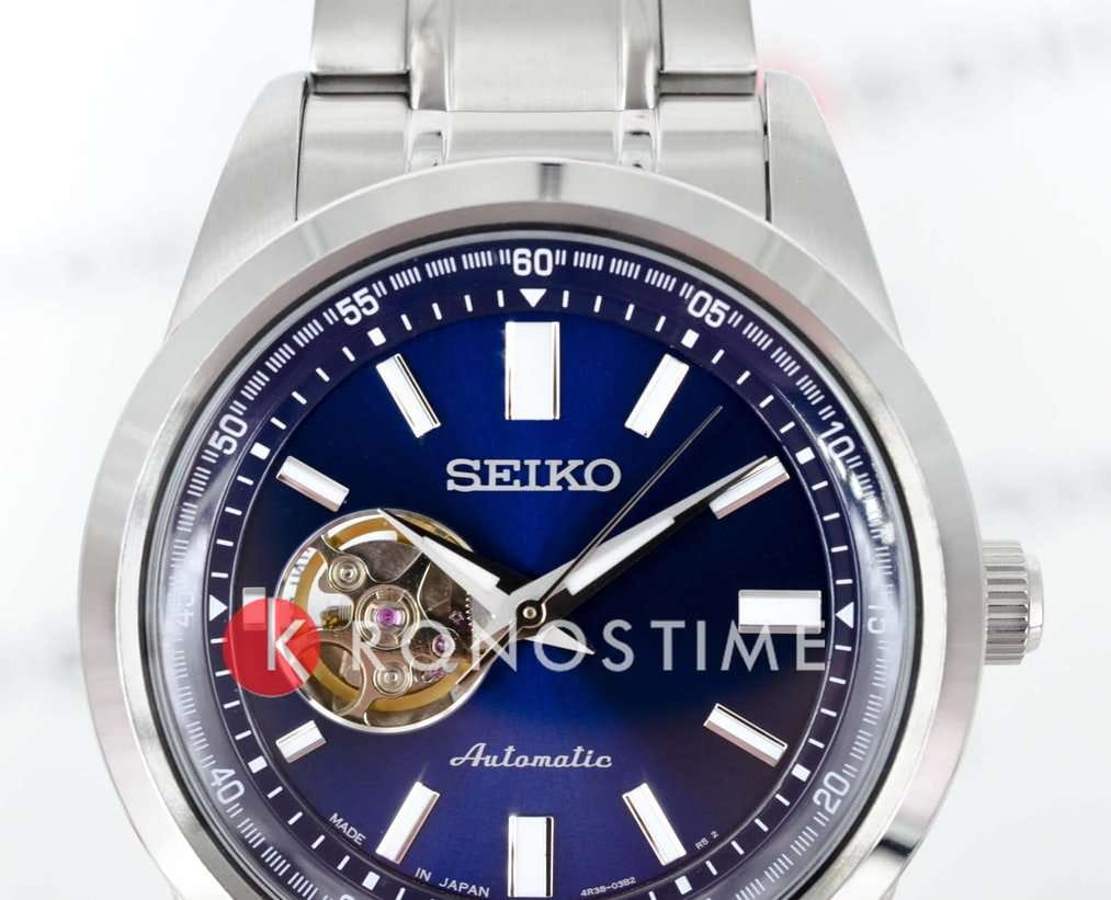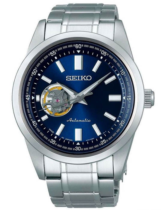Seiko SCVE051 — утончённая модель с безупречной японской точностью, выполненная в корпусе из нержавеющей стали с тщательно отполированной поверхностью. Циферблат глубокого синего оттенка завораживает своим благородным переливом и открывает изящное апертуру open heart, сквозь которую видна ритмичная работа автоматического механизма — настоящий символ инженерного мастерства. В основе конструкции — надёжный калибр 4R38 с автоподзаводом, 24 камнями и запасом хода до 41 часа. Задняя крышка с прозрачным окном позволяет наблюдать за слаженной работой механизма. Циферблат защищён прочным минеральным стекломМинеральное стеклоМинеральное стекло представляет собой искусственно выращенный минерал кварца. Такое стекло отличается особой устойчивостью к повреждениям и царапинам. Уступает по некоторым качествам сапфировому стеклу., устойчивым к царапинам и механическим воздействиям. Часовые метки и стрелки снабжены люминесцентным покрытиемЛюминесцентное покрытиеПозволяет считывать показания времени в темноте. Производители наносят на стрелки, часовые индексы, безель или поверхность циферблата светонакопительный состав, дающий холодное свечение., обеспечивающим уверенное считывание показаний в условиях недостаточной освещённости. Водонепроницаемость до 100 метров гарантирует функциональность в повседневном использовании и при контакте с водой. Браслет из нержавеющей стали дополнен надёжной раскладной застёжкойРаскладная застёжкаТакой тип застёжки используется только на браслетах из металла. Она никогда не раскрывается полностью, происходит разделение на 2 и более частей. Раскладывающая застёжка снизит вероятность потери часов к минимуму., обеспечивающей комфортную и безопасную фиксацию на запястье. Эта модель сочетает в себе лаконичную эстетику, техническую продуманность и безупречное исполнение, соответствующее высоким стандартам часового искусства.