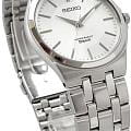 Женские кварцевые часы Seiko — это надёжный и универсальный аксессуар. Корпус диаметром 34,7 мм и толщиной 7,1 мм выполнен из нержавеющей стали 316L. Циферблат белого цвета оформлен индексами и стрелками, включая центральную секундную стрелку. Циферблат защищён прочным закалённым минеральным стеклом Hardlex минеральным стекломМинеральное стеклоМинеральное стекло представляет собой искусственно выращенный минерал кварца. Такое стекло отличается особой устойчивостью к повреждениям и царапинам. Уступает по некоторым качествам сапфировому стеклу.. Механизм — японское кварцевое движение калибра 7N01 с высокой точностью хода (±10–15 сек. в месяц). Заводная головка с защитой обеспечивает повышенную надёжность. Часы оснащены стальным браслетом на раскладной застёжкеРаскладная застёжкаТакой тип застёжки используется только на браслетах из металла. Она никогда не раскрывается полностью, происходит разделение на 2 и более частей. Раскладывающая застёжка снизит вероятность потери часов к минимуму. с фиксатором. Водонепроницаемость 50 м позволяет использовать часы в повседневных условиях. Идеальный выбор для тех, кто ценит японское качество и классический дизайн.