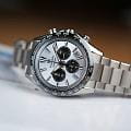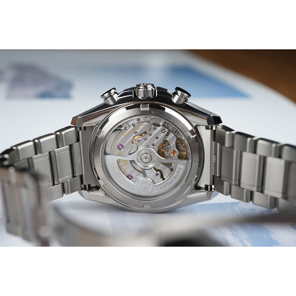 Модель SLGC007G из коллекции Grand Seiko Evolution 9 — это высокоточный дайверский хронографХронографФункция позволяет измерять отрезки времени с особой точностью: часы, минуты, секунды. Верным признаком хронографа является наличие на циферблате 3 дополнительных окошек-счётчиков. с секундомеромСекундомерСекундоме́р — прибор, способный измерять интервалы времени с точностью до долей секунды., сочетающий в себе передовые технологии и японскую эстетику. Корпус и браслет выполнены из титанового сплава Brilliant Hard Titanium, обеспечивая лёгкость и устойчивость к коррозии. Циферблат с матовой отделкой и крупными метками покрытыми люминесцентным покрытиемЛюминесцентное покрытиеПозволяет считывать показания времени в темноте. Производители наносят на стрелки, часовые индексы, безель или поверхность циферблата светонакопительный состав, дающий холодное свечение. гарантирует отличную читаемость в любых условиях. Часы оснащены автоматическим механизмом 9SC5. Диаметр корпуса составляет 43.2 мм, толщина 15.3 мм. Циферблат защищён сапфировым стекломСапфировое стеклоПрочный и надёжный материал из кристалла сапфира синтетического происхождения, характеризующийся особой твёрдостью и устойчивостью к царапинам и повреждениям. с антибликовым покрытиемАнтибликовое покрытиеСлой оксида металла в 0,13-0,3 микрон, благодаря которому стекло часов не бликует и не отражает свет. Антибликовое покрытие уменьшает отражение света в 10 раз, обеспечивая отличную читаемость показателей циферблата. на внутренней стороне. Установлена раскладная застёжка с фиксаторомРаскладная застёжкаТакой тип застёжки используется только на браслетах из металла. Она никогда не раскрывается полностью, происходит разделение на 2 и более частей. Раскладывающая застёжка снизит вероятность потери часов к минимуму. обеспечивает комфортное ношение. Шкала тахиметраТахиметрРазмеченная шкала, располагается на ободке или безеле часов. Тахиметр позволяет рассчитать скорость на определённом участке пути, расстояние измеряется в километрах или милях. на керамическом безелеБезельВнешний ободок, закрепляющий стекло. В спортивных часах так называется поворотное кольцо с делениями на циферблате, выполняет роль таймера – замеряет отрезки времени на шкале. Неподвижный безель – элемент декора. Однонаправленно вращающийся безель на дайверских часах позволяет фиксировать моменты погружения и выныривания на поверхность.. Модель обладает водонепроницаемостью до 100 метров идеальным выбором для профессиональных дайверов и ценителей надёжных часов.