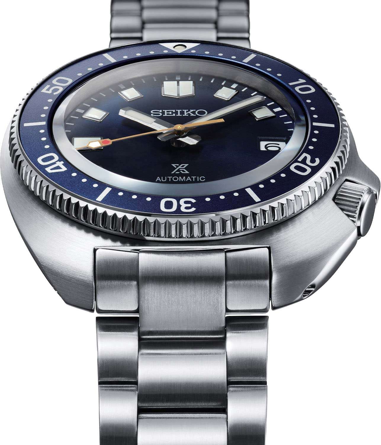 Мужские механические часы с автоподзаводом Seiko — это спортивный аксессуар из коллекции Prospex, выпущенный ограниченной серией в честь 55-летия легендарных дайверских часов Seiko — всего 5500 экземпляров. Корпус диаметром 42 мм и толщиной 13 мм выполнен из стали с частичным PVD-покрытиемPVDУльтратонкое покрытие наносится в технике вакуумного напыления, сочетает в себе нитрид титана особой прочности со слоем золота или оксида хрома. Несёт в себе декоративную или защитную функцию.. Циферблат синего цвета оформлен штрихами и логотипом бренда. Окошко даты расположено в положении 3 часов. Стрелки и метки с люминесцентным покрытиемЛюминесцентное покрытиеПозволяет считывать показания времени в темноте. Производители наносят на стрелки, часовые индексы, безель или поверхность циферблата светонакопительный состав, дающий холодное свечение. LumiBrite, обеспечивающим высокую читаемость в темноте. Циферблат защищён изогнутым сапфировым стекломСапфировое стеклоПрочный и надёжный материал из кристалла сапфира синтетического происхождения, характеризующийся особой твёрдостью и устойчивостью к царапинам и повреждениям. с антибликовым покрытиемАнтибликовое покрытиеСлой оксида металла в 0,13-0,3 микрон, благодаря которому стекло часов не бликует и не отражает свет. Антибликовое покрытие уменьшает отражение света в 10 раз, обеспечивая отличную читаемость показателей циферблата. на внутренней поверхности. Механизм — автоматический калибр 6R35 (24 камня, частота 21 600 полуколебаний в час) с возможностью ручного завода и функцией , запас хода до 70 часов. БезельБезельВнешний ободок, закрепляющий стекло. В спортивных часах так называется поворотное кольцо с делениями на циферблате, выполняет роль таймера – замеряет отрезки времени на шкале. Неподвижный безель – элемент декора. Однонаправленно вращающийся безель на дайверских часах позволяет фиксировать моменты погружения и выныривания на поверхность. — однонаправленный, вращающийся. Завинчивающаяся задняя крышка и заводная головка с защитой на позиции 4 часов повышают надёжность. Часы оснащены стальным браслетом с раскладной застёжкойРаскладная застёжкаТакой тип застёжки используется только на браслетах из металла. Она никогда не раскрывается полностью, происходит разделение на 2 и более частей. Раскладывающая застёжка снизит вероятность потери часов к минимуму. с системой блокировки. В комплекте — сменный силиконовый ремешок. Водонепроницаемость 200 м позволяет использовать часы для профессионального плавания и дайвинга. Идеальный выбор для тех, кто ценит историю, точность и мощный дизайн.