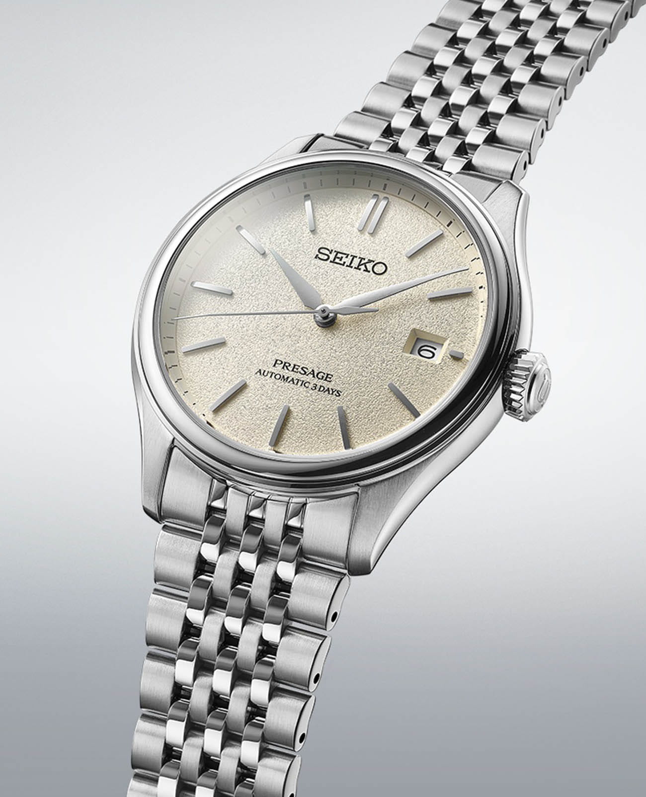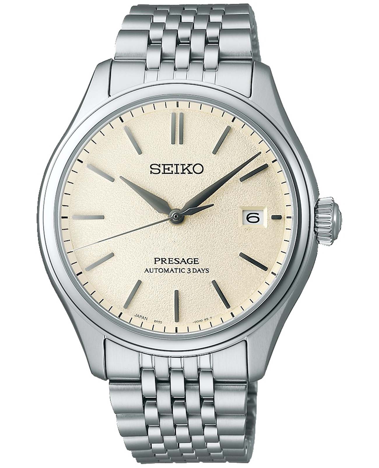 Мужские механические часы Seiko Presage Classic SPB463 — это отражение японского мастерства и внимания к деталям. Серия вдохновлена цветами, текстурами и материалами традиционных японских ремёсел, что нашло своё отражение в изысканном дизайне и высокой функциональности модели. Часы оснащены калибром 6R55 — надёжным механизмом с автоподзаводом и возможностью ручной подзаводки. Механизм работает на частоте 21 600 полуколебаний в час, имеет 24 драгоценных камня и обеспечивает запас хода до 72 часов. Также реализована функция стоп-секунды для точной установки времени и защита от магнитных полей до 4800 А/м. Циферблат бежевого цвета выполнен в стиле «широ-иро» — в оттенке неотбелённого шелка. Его поверхность украшена тонкой текстурой, напоминающей благородный блеск натуральной ткани. Центральный узор взаимодействует со светом, создавая ощущение глубины и элегантности. Метки выполнены в виде аккуратных штрихов, а информация о дате вынесена в окошко в положении 3 часов. Защиту циферблата обеспечивает сапфировое стеклоСапфировое стеклоПрочный и надёжный материал из кристалла сапфира синтетического происхождения, характеризующийся особой твёрдостью и устойчивостью к царапинам и повреждениям. выпуклой формы с антибликовым покрытием с обеих сторон. Корпус диаметром 40,2 мм изготовлен из нержавеющей стали и дополнен прозрачной завинчивающейся задней крышкой, через которую можно рассмотреть работу механизма. Браслет выполнен из стали и оснащён раскладной застёжкойРаскладная застёжкаТакой тип застёжки используется только на браслетах из металла. Она никогда не раскрывается полностью, происходит разделение на 2 и более частей. Раскладывающая застёжка снизит вероятность потери часов к минимуму., обеспечивающей комфорт и уверенную фиксацию на запястье. Часы водонепроницаемы до 100 метров , что позволяет использовать их при плавании или занятиях водными видами спорта. Эти часы станут универсальным аксессуаром для тех, кто ценит сочетание культурного наследия, технологий и эстетики — идеальный выбор для повседневной носки и торжественных случаев.