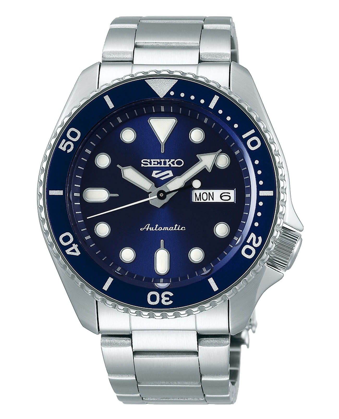 Механические часы Seiko SRPD51K1 из коллекции 5 Sports — это надёжный и функциональный аксессуар, сочетающий в себе точность, прочность и узнаваемый дизайн. Модель оснащена калибром 4R36 с автоподзаводом и возможностью ручной подзаводки. Механизм имеет 24 драгоценных камня и обеспечивает запас хода до 41 часа. Также реализована функция стоп-секунды для точной установки времени, а также отображение дня недели и даты. Циферблат синего цвета выполнен по технологии Sunray, имитирующей солнечные лучи. Метки представлены в виде штрихов и точек, а стрелки и индексы покрыты фирменным люминесцентным составомЛюминесцентное покрытиеПозволяет считывать показания времени в темноте. Производители наносят на стрелки, часовые индексы, безель или поверхность циферблата светонакопительный состав, дающий холодное свечение. LumiBrite, обеспечивающим отличную читаемость даже в темноте. Защиту циферблата обеспечивает минеральное стеклоМинеральное стеклоМинеральное стекло представляет собой искусственно выращенный минерал кварца. Такое стекло отличается особой устойчивостью к повреждениям и царапинам. Уступает по некоторым качествам сапфировому стеклу. повышенной прочности Hardlex. Часы имеют односторонне вращающийся безельБезельВнешний ободок, закрепляющий стекло. В спортивных часах так называется поворотное кольцо с делениями на циферблате, выполняет роль таймера – замеряет отрезки времени на шкале. Неподвижный безель – элемент декора. Однонаправленно вращающийся безель на дайверских часах позволяет фиксировать моменты погружения и выныривания на поверхность. — удобный элемент для контроля времени при водных активностях. Заводная головка с защитой расположена в положении 4 часов, что повышает комфорт при ношении. Задняя крышка — завинчивающаяся и прозрачная, что позволяет наблюдать за работой механизма. Корпус диаметром 42,5 мм изготовлен из стали с частичным PVD-покрытиемPVDУльтратонкое покрытие наносится в технике вакуумного напыления, сочетает в себе нитрид титана особой прочности со слоем золота или оксида хрома. Несёт в себе декоративную или защитную функцию., придающим модели благородный внешний вид. Браслет выполнен из стали и оснащён трёхсгибной раскладной застёжкойРаскладная застёжкаТакой тип застёжки используется только на браслетах из металла. Она никогда не раскрывается полностью, происходит разделение на 2 и более частей. Раскладывающая застёжка снизит вероятность потери часов к минимуму. с системой блокировки, обеспечивающей комфорт и уверенную фиксацию на запястье. Ширина браслета составляет 22 мм, что делает его гармонично сочетающимся с корпусом. Часы водонепроницаемы до 100 метров (), что позволяет использовать их при плавании и других водных активностях. Также реализована защита от магнитных полей до 4800 А/м. Эти часы станут универсальным аксессуаром для тех, кто ценит сочетание технологичности, прочности и эстетики — идеальный выбор как для повседневного использования, так и для активного образа жизни.