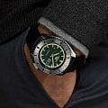 Мужские механические часы с автоподзаводом Seiko — это лимитированная модель, выпущенная тиражом всего 4000 экземпляров в честь 55-летия коллекции и совместного проекта с культовым сериалом *Masked Rider*. Корпус диаметром 42,5 мм и толщиной 13,4 мм выполнен из стали. Циферблат зелёного цвета с текстурой, вдохновлённой шлемом главного героя сериала *Masked Rider 1*, оформлен индексами и стрелками. Окошки даты и дня недели расположены в положении 3 часов. Стрелки и метки с люминесцентным покрытиемЛюминесцентное покрытиеПозволяет считывать показания времени в темноте. Производители наносят на стрелки, часовые индексы, безель или поверхность циферблата светонакопительный состав, дающий холодное свечение. LumiBrite, обеспечивающим хорошую читаемость в темноте. Циферблат защищён выпуклым минеральным стеклом повышенной прочности . Механизм — автоматический калибр 4R36 (24 камня, частота 21 600 полуколебаний в час) с возможностью ручного завода, функцией и запасом хода до 41 часа. БезельБезельВнешний ободок, закрепляющий стекло. В спортивных часах так называется поворотное кольцо с делениями на циферблате, выполняет роль таймера – замеряет отрезки времени на шкале. Неподвижный безель – элемент декора. Однонаправленно вращающийся безель на дайверских часах позволяет фиксировать моменты погружения и выныривания на поверхность. — однонаправленный, вращающийся. Завинчивающаяся прозрачная задняя крышка украшена логотипом Tachibana Racing и имеет индивидуальный серийный номер. Заводная головка с защитой на позиции 4 часов повышает надёжность. Часы оснащены кожаным ремешком с классической пряжкой. Водонепроницаемость 100 м позволяет использовать часы для плавания и повседневного ношения. Идеальный выбор для коллекционеров и ценителей уникального дизайна.