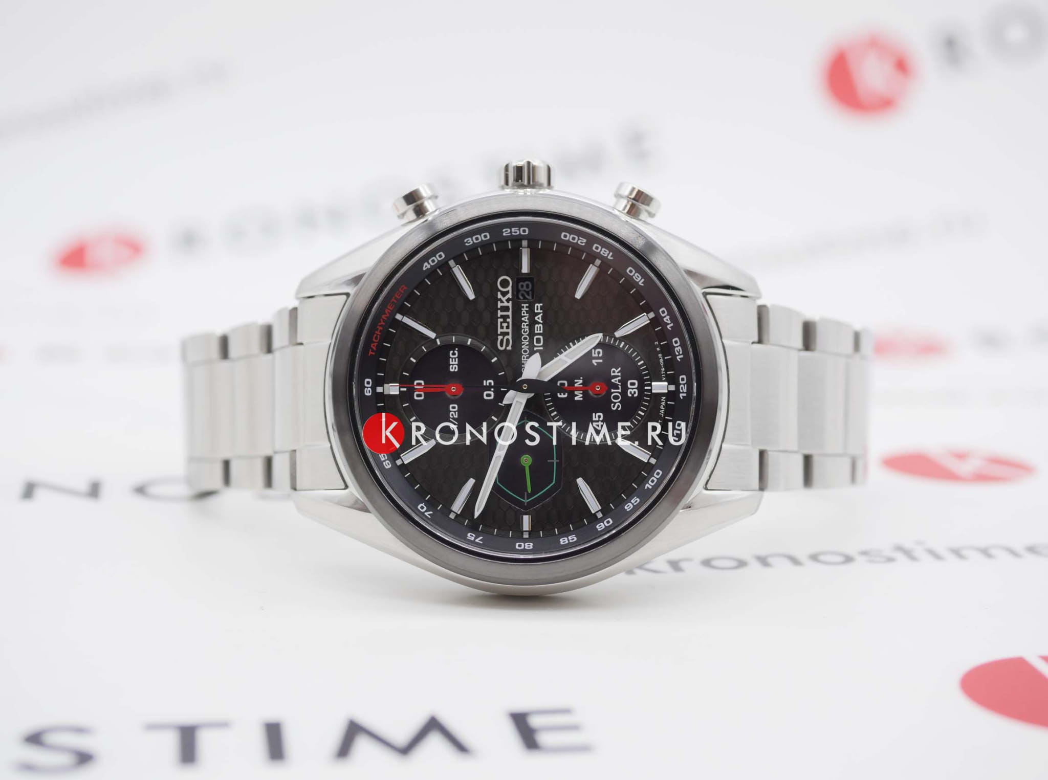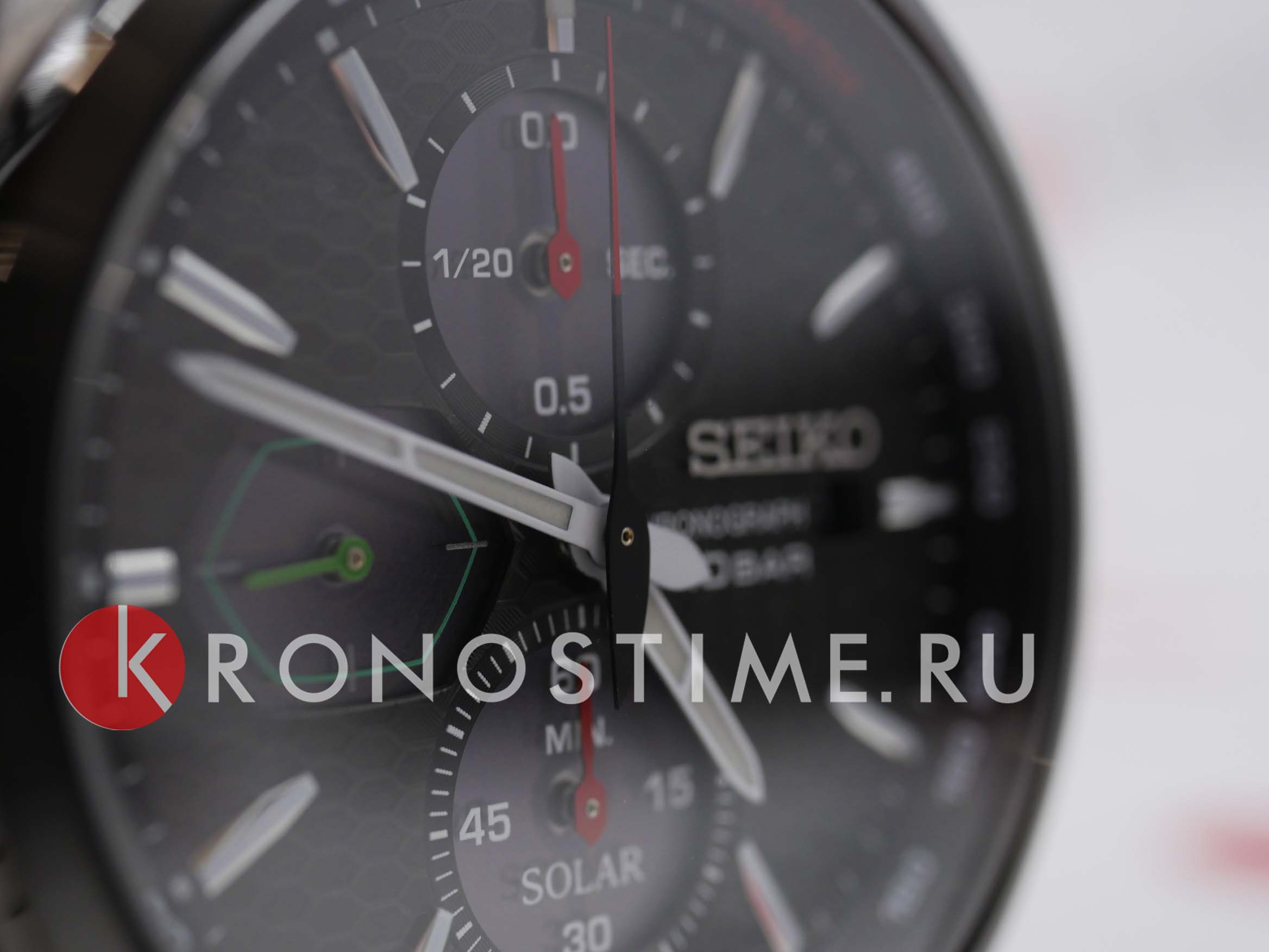 Мужские японские часы-хронографХронографФункция позволяет измерять отрезки времени с особой точностью: часы, минуты, секунды. Верным признаком хронографа является наличие на циферблате 3 дополнительных окошек-счётчиков. Seiko Conceptual Series Sports SSC803P1, кварцевый механизм с высокой точностью. Сапфировое стекло устойчивое к появлению царапин, обладающее высокой прозрачностью. Класс водозащиты: 100 метров, позволит плавать, нырять и заниматься другими водными видами спорта. Окошко даты находится в положении 3 часа. Корпус и браслет часов изготовлены из стали. Секундомер с точностью 1/20сек и временем измерения 1ч. Питание от солнечной энергии. Функция индикации заряда EOLEOLПредставляет собой систему, уведомляющую владельца часов о необходимости замены элемента питания. За 2 недели до полного разряда батарейки секундная стрелка перестаёт ходить чётко и начинает перепрыгивать на 3-4 деления..