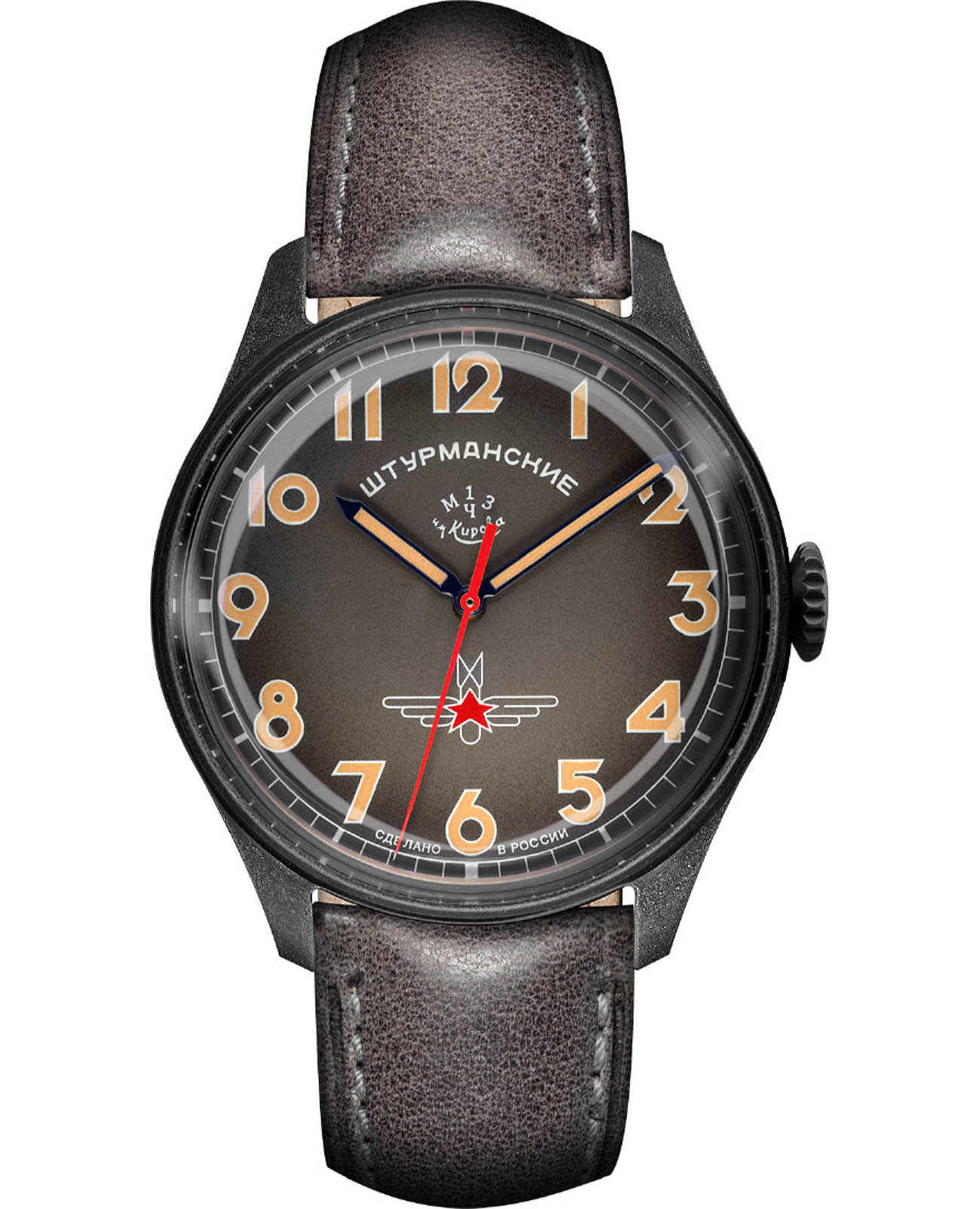 Лимитированные мужские российские механические часы Штурманские Гагарин Наследие 2609/3700478, механический механизм (автоматический калибр) с высокой точностью. Минеральное стеклоМинеральное стеклоМинеральное стекло представляет собой искусственно выращенный минерал кварца. Такое стекло отличается особой устойчивостью к повреждениям и царапинам. Уступает по некоторым качествам сапфировому стеклу. устойчивое к мелким механическим повреждениям.. Класс водозащиты: 50 метров, позволит защитить корпус от случайных брызг или капель дождя. Корпус часов изготовлен из стали с PVD-покрытиемPVDУльтратонкое покрытие наносится в технике вакуумного напыления, сочетает в себе нитрид титана особой прочности со слоем золота или оксида хрома. Несёт в себе декоративную или защитную функцию.. Кожаный ремешок на стандартной застёжке. Стрелки и метки с люминесцентным покрытиемЛюминесцентное покрытиеПозволяет считывать показания времени в темноте. Производители наносят на стрелки, часовые индексы, безель или поверхность циферблата светонакопительный состав, дающий холодное свечение.. Задняя крышка с барельефом Гагарина. Чёткая, читаемая минутная шкала уходит за приделы видимой области циферблата, подчёркивая изящность ободка корпуса. Оцифровка циферблата – отличительная особенность данной модели, её дизайн не изменился с самой первый, гагаринской серии. Заводная головка конической формы с удобной насечкой повторяет дизайн оригинальной модели.