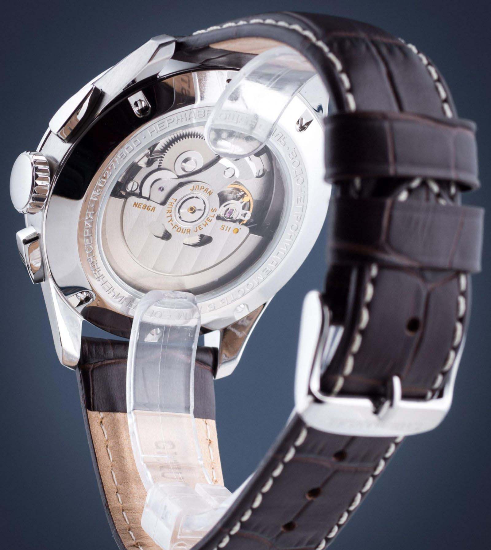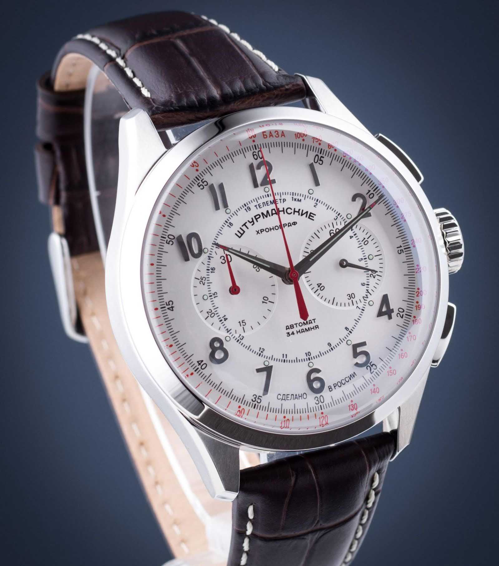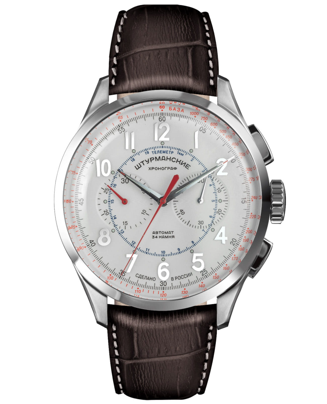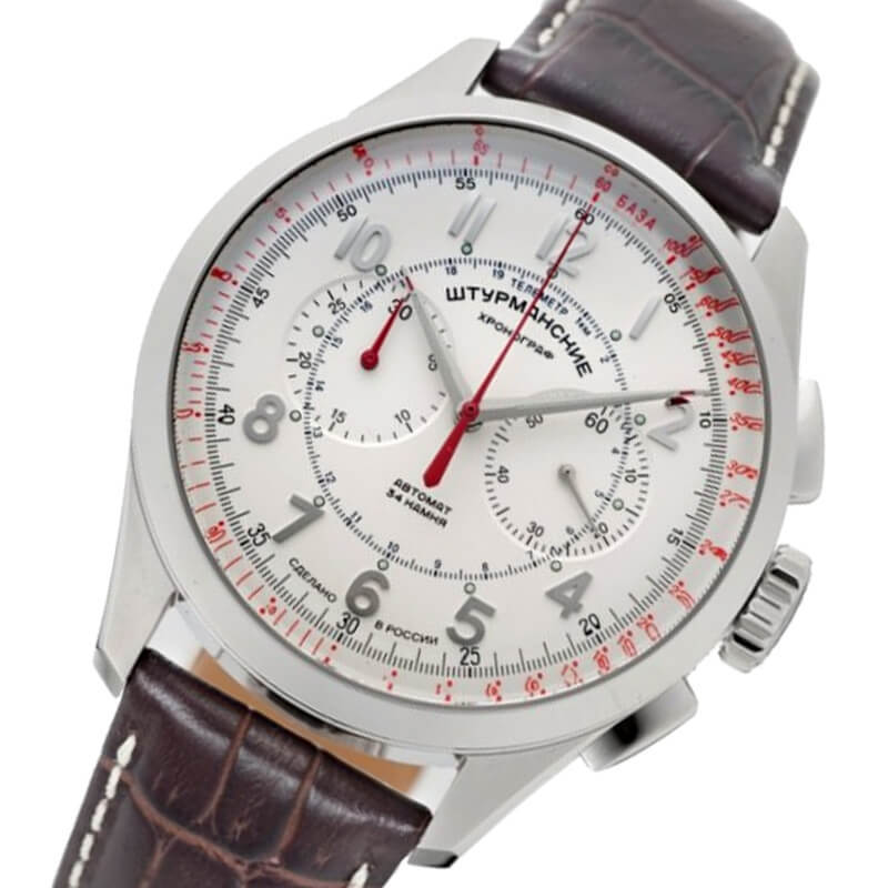 Лимитированные мужские российские механические часы-хронографХронографФункция позволяет измерять отрезки времени с особой точностью: часы, минуты, секунды. Верным признаком хронографа является наличие на циферблате 3 дополнительных окошек-счётчиков. с секундомеромСекундомерСекундоме́р — прибор, способный измерять интервалы времени с точностью до долей секунды. Штурманские Открытый Космос NE86/1855016, механический механизм (автоматический калибр) с высокой точностью. Лимитированная серия - 500 экземпляров, посвящена первому выходу человека в открытый космос. Сапфировое стеклоСапфировое стеклоПрочный и надёжный материал из кристалла сапфира синтетического происхождения, характеризующийся особой твёрдостью и устойчивостью к царапинам и повреждениям. устойчивое к появлению царапин, обладающее высокой прозрачностью. Класс водозащиты: 50 метров, позволит защитить корпус от случайных брызг или капель дождя. Корпус часов изготовлен из стали. Кожаный ремешок на стандартной застёжке. Стрелки и метки с люминесцентным покрытиемЛюминесцентное покрытиеПозволяет считывать показания времени в темноте. Производители наносят на стрелки, часовые индексы, безель или поверхность циферблата светонакопительный состав, дающий холодное свечение.. Стальной корпус надежно защищает от повреждений механический японский калибр Seiko NE86 на 34 камня с запасом хода 42 часа. Подзавод у часов автоматический.
