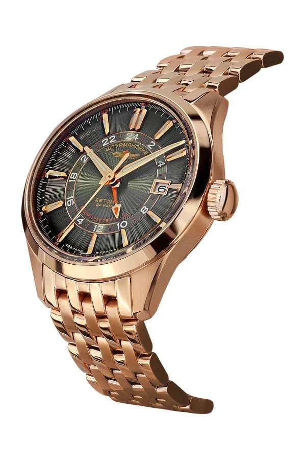 Мужские часы Штурманские Открытый космос NH34/1899058B - это воплощение элегантности и точности. Лимитированная серия — 3000 экземпляров. Корпус из нержавеющей стали диаметром 42 мм с PVD-покрытиемPVDУльтратонкое покрытие наносится в технике вакуумного напыления, сочетает в себе нитрид титана особой прочности со слоем золота или оксида хрома. Несёт в себе декоративную или защитную функцию. идеально сбалансирован и элегантен. Минеральное стеклоМинеральное стеклоМинеральное стекло представляет собой искусственно выращенный минерал кварца. Такое стекло отличается особой устойчивостью к повреждениям и царапинам. Уступает по некоторым качествам сапфировому стеклу. защищает циферблат от царапин. Стальной браслет на застёжке-бабочке с кнопкамиЗастёжка "бабочка"Такой вид застёжки дополняется предохранителями, помогающими избежать случайного раскрытия браслета. Обладают изящным исполнением. идеально дополняют дизайн часов, обеспечивая комфортное ношение. Стрелки и метки на циферблате имеют люминесцентное покрытиеЛюминесцентное покрытиеПозволяет считывать показания времени в темноте. Производители наносят на стрелки, часовые индексы, безель или поверхность циферблата светонакопительный состав, дающий холодное свечение. позволяющее легко определять время даже в темноте. Запас хода 41 часов. Рифленая заводная головка. Окошко даты в накладной рамке находится в положении 3 часа. Индивидуальная нумерация. Задняя крышка украшена барельефом с изображением космонавта в открытом космосе, созданным по мотивам картины Алексея Леонова.