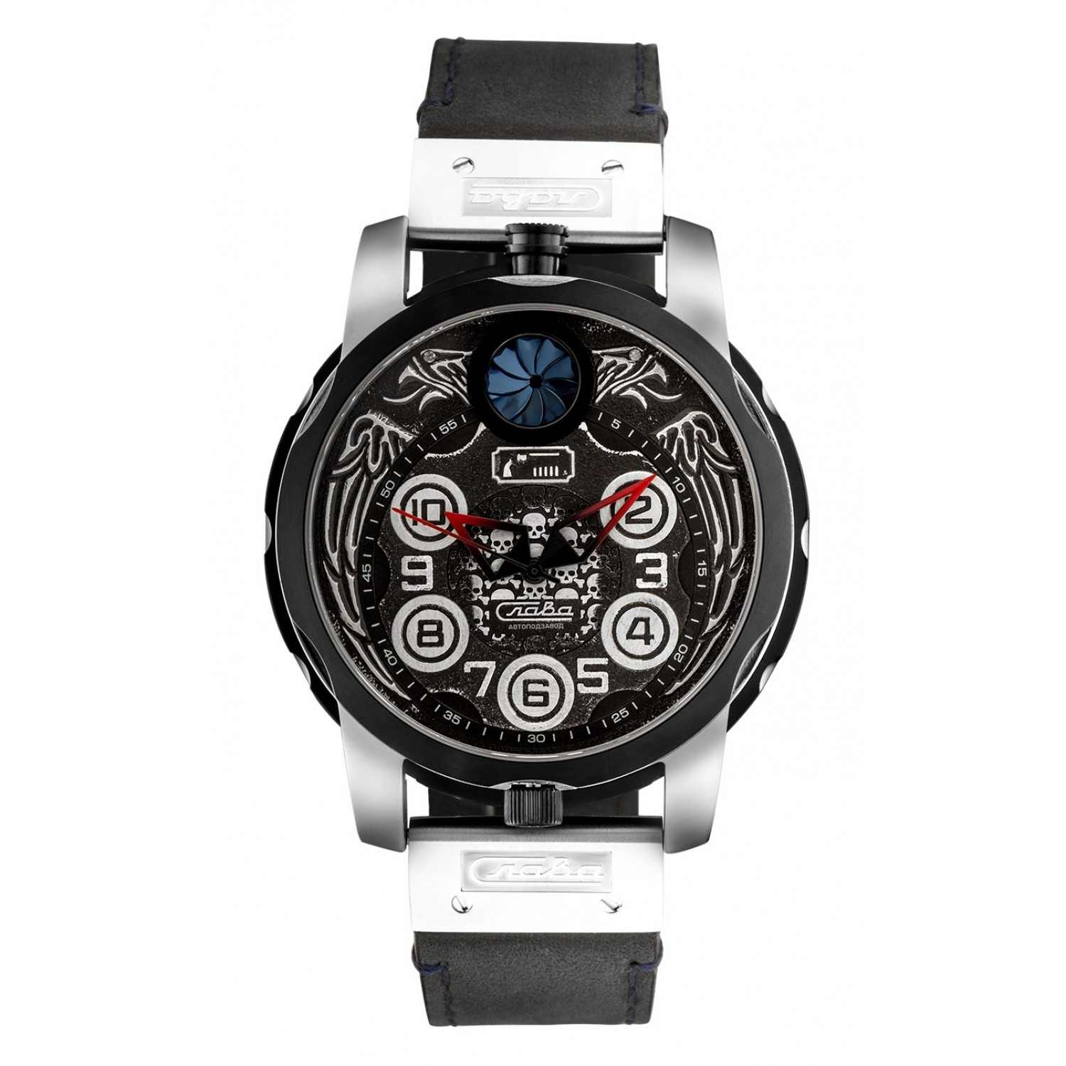 Российские механические наручные часы Слава Русская RUлетка 1900201/300-NH05, которые станут идеальным аксессуаром для повседневного ношения. Эти часы сочетают в себе элегантность и практичность, предлагая безупречный стиль и надежность. Оснащенные механизмом SEIKO NH05 с автоподзаводом, они обеспечивают точность и долговечность. Стальной корпус с сапфировым стекломСапфировое стеклоПрочный и надёжный материал из кристалла сапфира синтетического происхождения, характеризующийся особой твёрдостью и устойчивостью к царапинам и повреждениям. защищает циферблат с арабскими цифрами и необычными стрелками цифрами. БезельБезельВнешний ободок, закрепляющий стекло. В спортивных часах так называется поворотное кольцо с делениями на циферблате, выполняет роль таймера – замеряет отрезки времени на шкале. Неподвижный безель – элемент декора. Однонаправленно вращающийся безель на дайверских часах позволяет фиксировать моменты погружения и выныривания на поверхность. часов с PVDPVDУльтратонкое покрытие наносится в технике вакуумного напыления, сочетает в себе нитрид титана особой прочности со слоем золота или оксида хрома. Несёт в себе декоративную или защитную функцию. покрытием черного цвета. Особенность часов - искусственные бриллианты в глазах орлов и изображение черепов на циферблате. Это первые в мире часы с шестизарядным револьверным барабаном. В барабане — один патрон. Старинная забава русских офицеров и любителей острых ощущений со всего мира. Водозащита на часах до 10 ATM, что делает их надежными в различных условиях. Кожаный черный ремешок с застежкой «бабочка»Застёжка "бабочка"Такой вид застёжки дополняется предохранителями, помогающими избежать случайного раскрытия браслета. Обладают изящным исполнением. завершает этот изысканный образ.